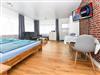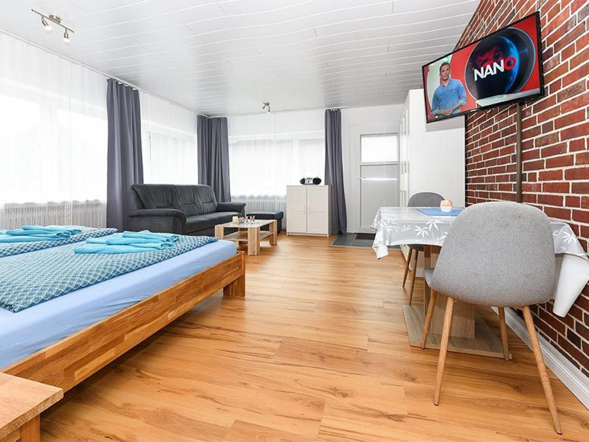 Unser modernes Studio im Erdgeschoss besticht durch ein hellen und großzügigen Wohn-/Schlafbereich und einen eigenen Hauseingang.