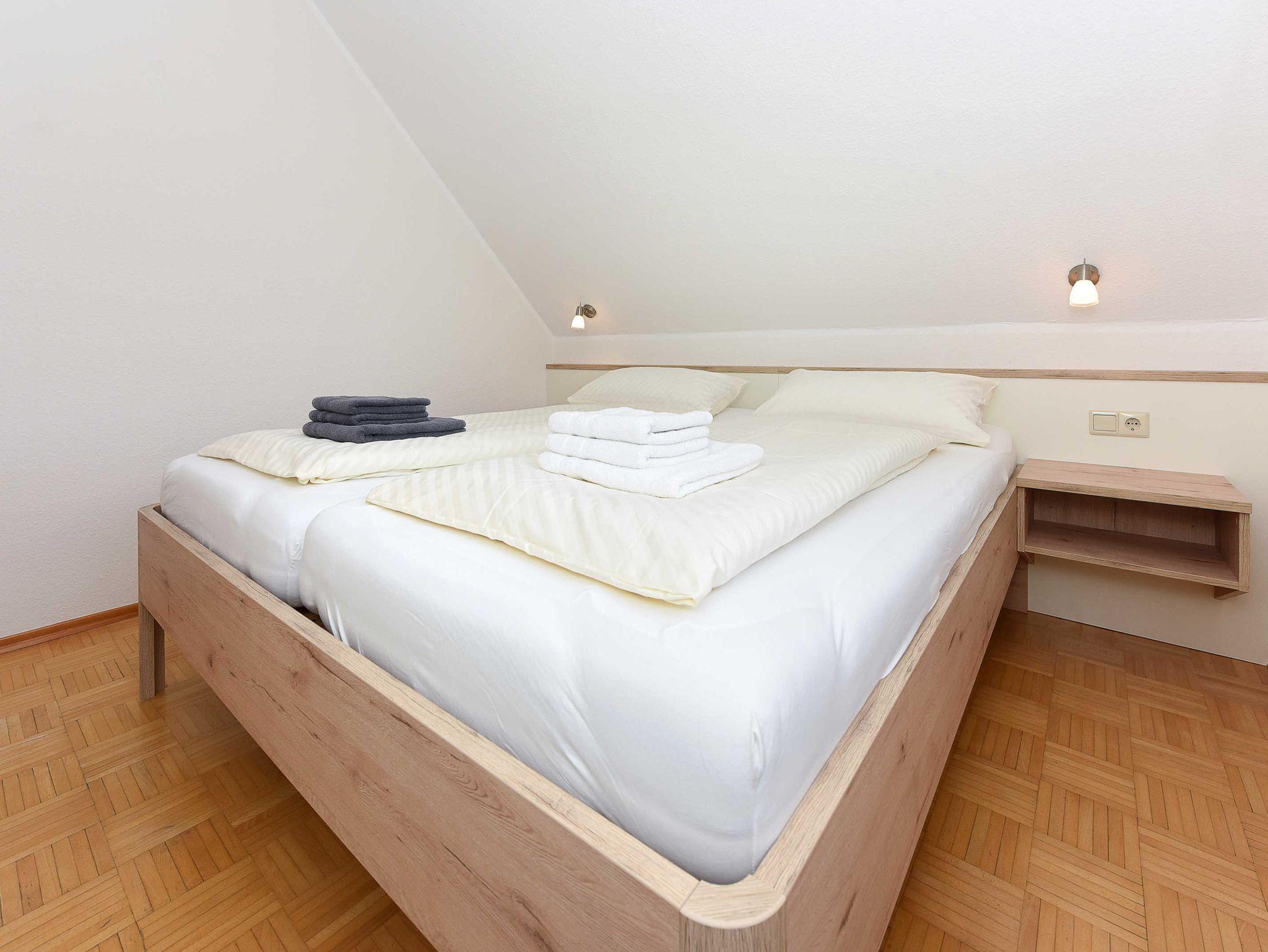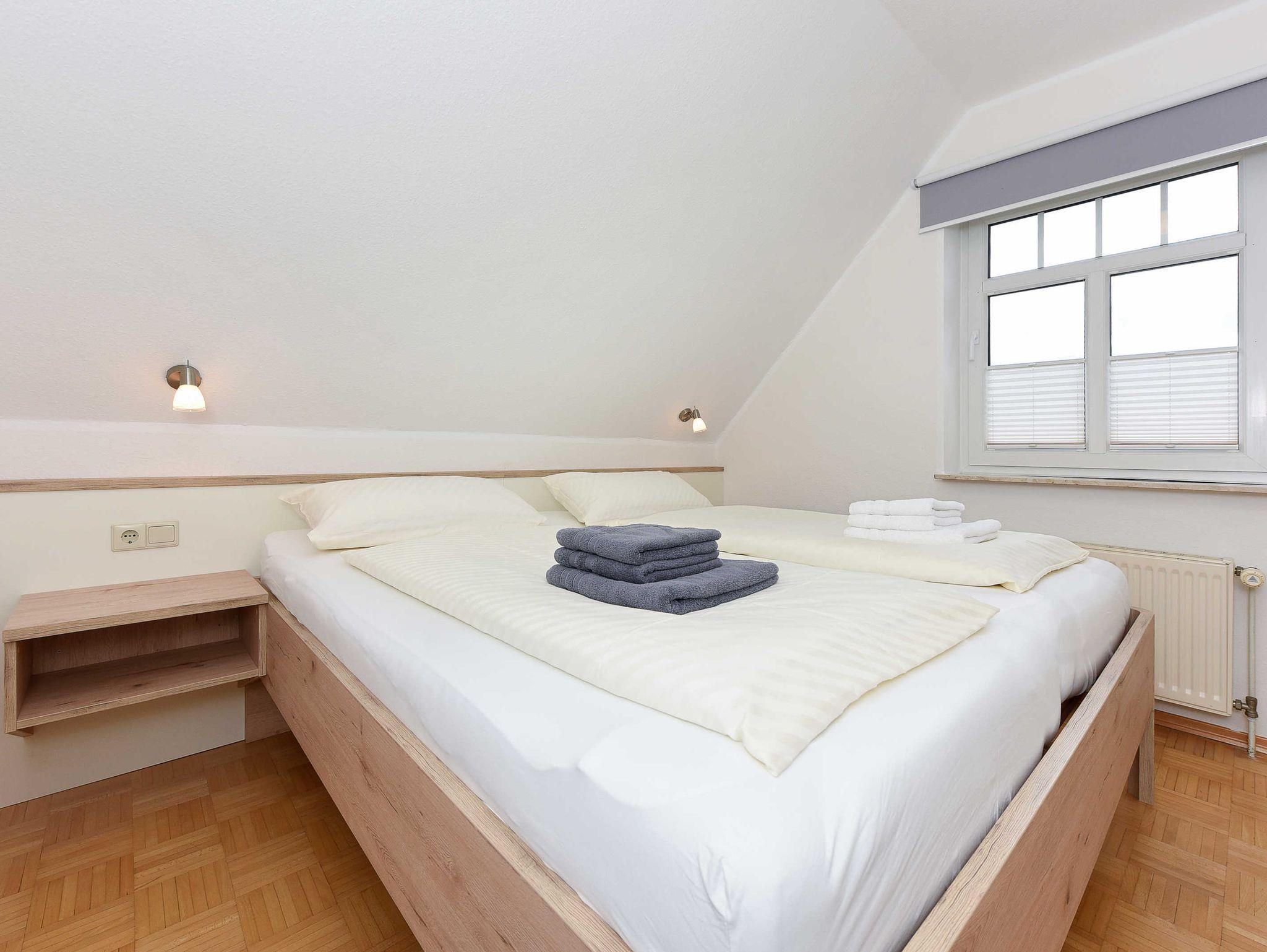 Größe ca. 90 Quadratmeter, Wohnraum mit integrierter Küche und Essgruppe, Schlafzimmer, zweites separates Schlafzimmer/Kinderzimmer, drittes separates Schlafzimmer, Badezimmer mit Dusche, Waschtisch und WC, Obergeschoss, Balkon, optimal für 2 bis 6 Personen und zusätzlich ein Kleinkind.