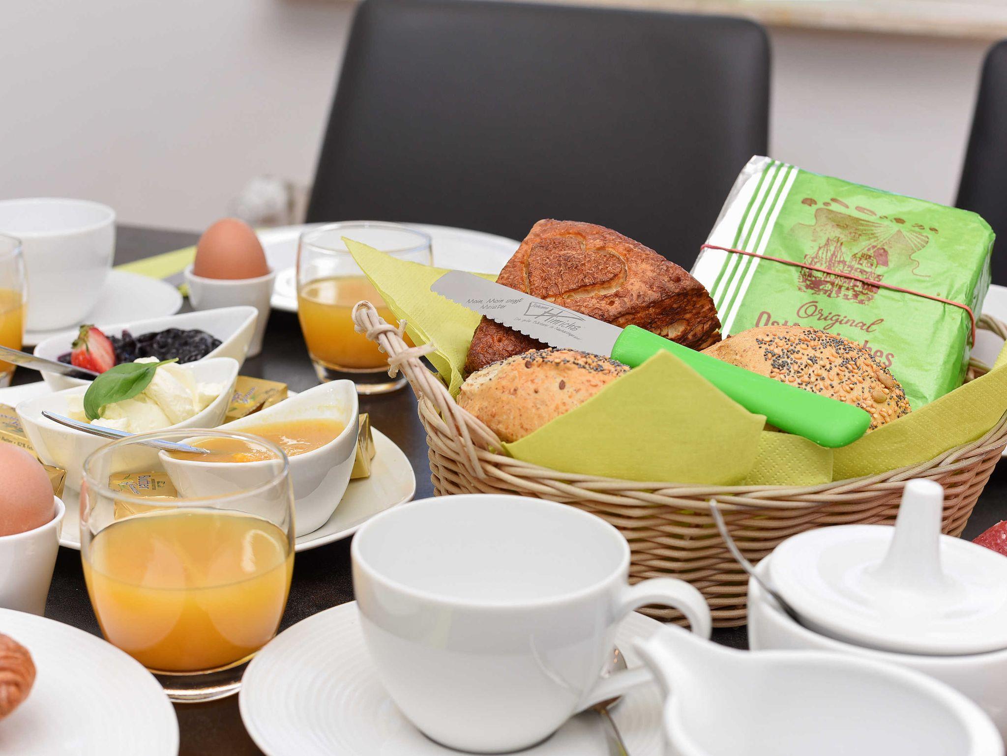 Ein kleiner, aber feiner zusätzlicher Clou: Unsere Bäckerei befindet sich unten im Haus und Sie bekommen die leckersten Brötchen und die besten Kuchen-Leckereien allmorgendlich absolut frisch auf den Tisch, wenn Sie möchten. Sie können auch auf der Bäckereiterrasse gleich Ihr ganzes Frühstück genießen.