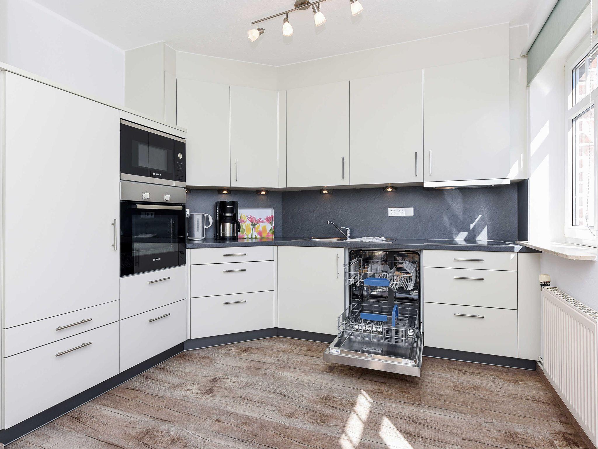 Alle Wohnungen sind speziell schallisolliert und verfügen über Geschirrspülmaschinen und Mikrowellen-Öfen, natürlich auch über voll ausgerüstete moderne Einbauküchen und alles, was man überhaupt im Urlaub benötigen könnte. Waschmaschine und Wäschetrockner stehen unseren Gästen zum Benutzen im Waschraum des Hauses zur Verfügung. In unseren Wohnungen liegen keine Teppichböden; damit möchten wir denjenigen Gästen entgegenkommen, die allergisch auf Staub und Tierhaare reagieren.