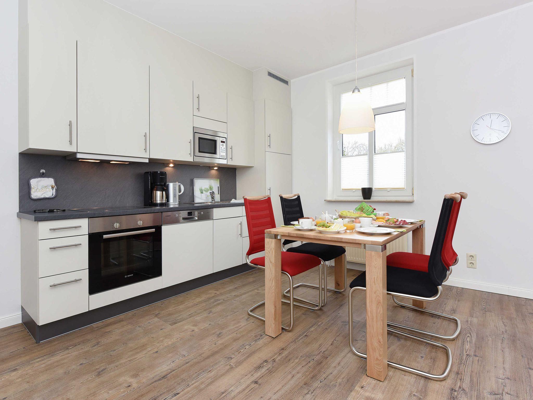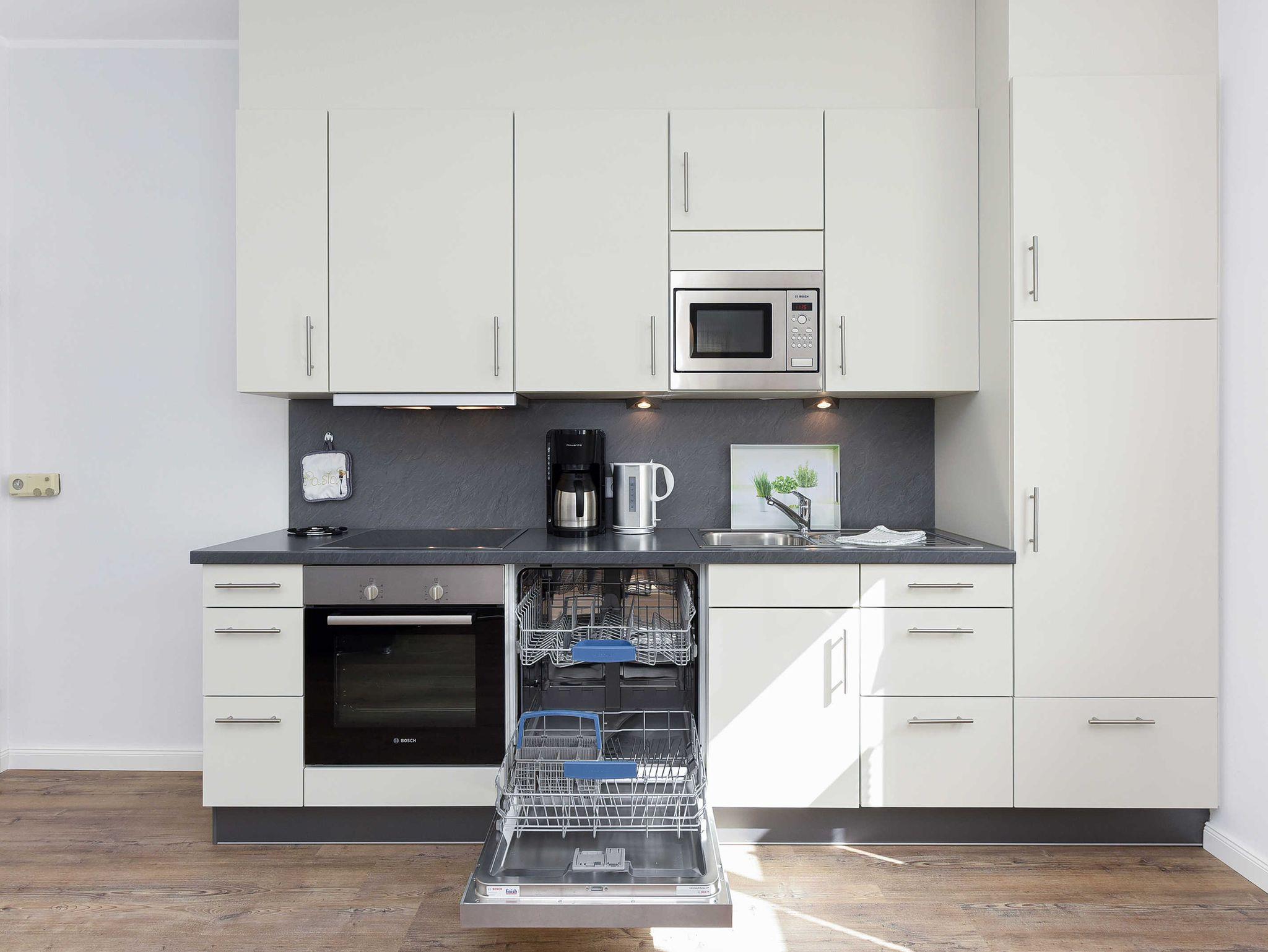 Alle Wohnungen sind speziell schallisolliert und verfügen über Geschirrspülmaschinen und Mikrowellen-Öfen, natürlich auch über voll ausgerüstete moderne Einbauküchen und alles, was man überhaupt im Urlaub benötigen könnte. Waschmaschine und Wäschetrockner stehen unseren Gästen zum Benutzen im Waschraum des Hauses zur Verfügung. In unseren Wohnungen liegen keine Teppichböden; damit möchten wir denjenigen Gästen entgegenkommen, die allergisch auf Staub und Tierhaare reagieren.