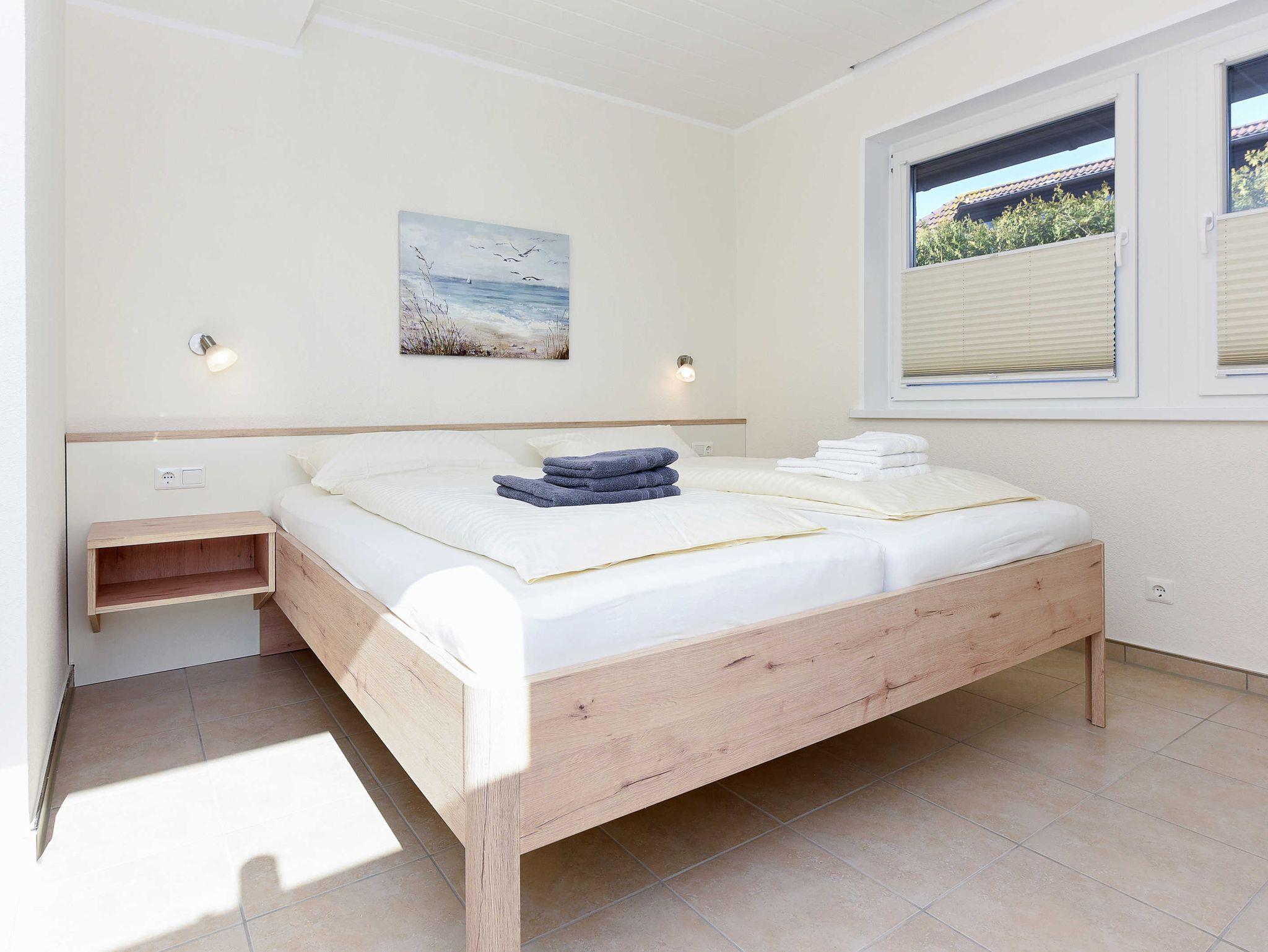 Größe ca. 90 Quadratmeter, Wohnraum mit integrierter Küche und Essgruppe, Schlafzimmer, zweites separates Schlafzimmer/Kinderzimmer, Badezimmer mit Dusche, Waschtisch und WC, separates zweites WC mit Waschtisch, Erdgeschoss, Terrasse, optimal für 2 bis 5 Personen und zusätzlich ein Kleinkind.