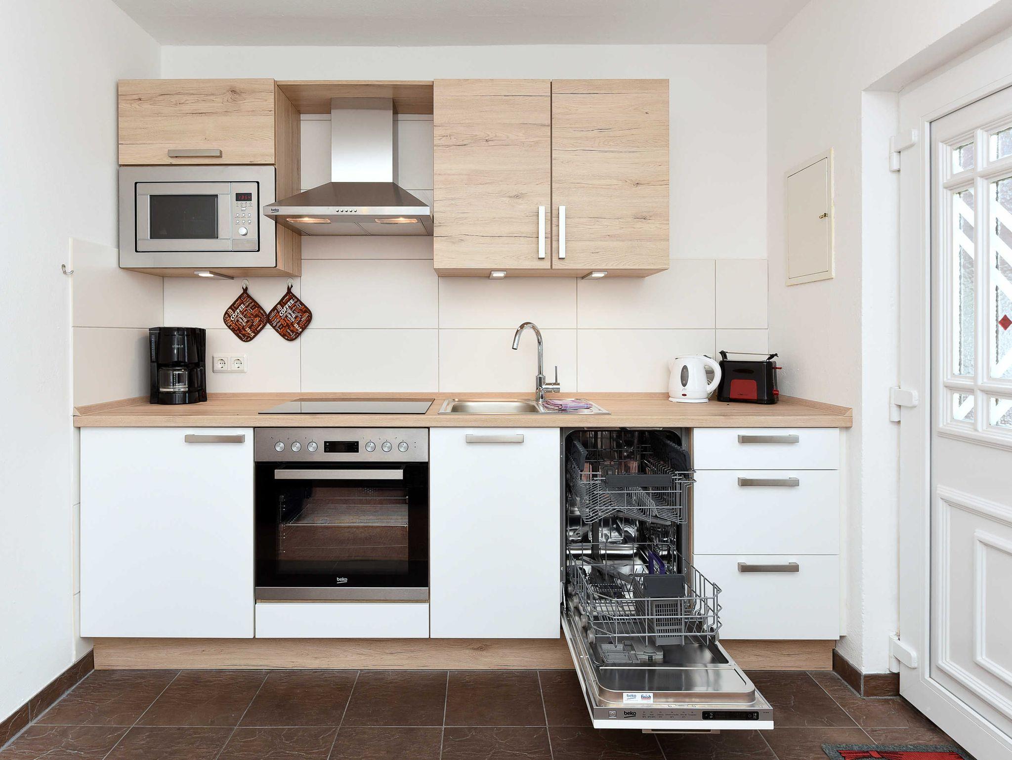 Größe ca. 40 Quadratmeter, Wohnraum mit integrierter Küche, Schlafzimmer, Badezimmer mit Dusche, Waschtisch und WC, Erdgeschoss, Terrasse, optimal für 2 bis 3 Personen.