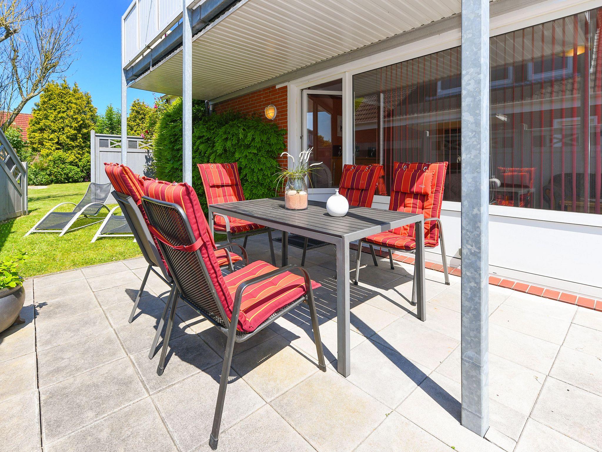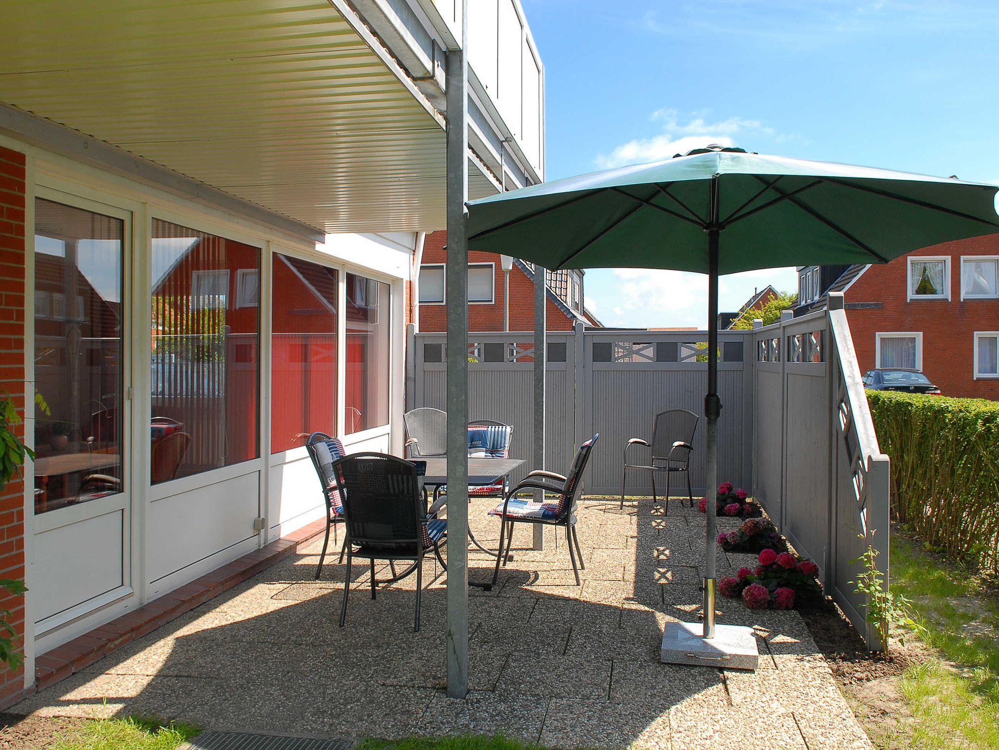 Das Haus Pamir in Neuharlingersiel bietet eine komfortable Ferienwohnung mit Terrasse, nahe Nordsee und Deich für entspannte Urlaubstage.