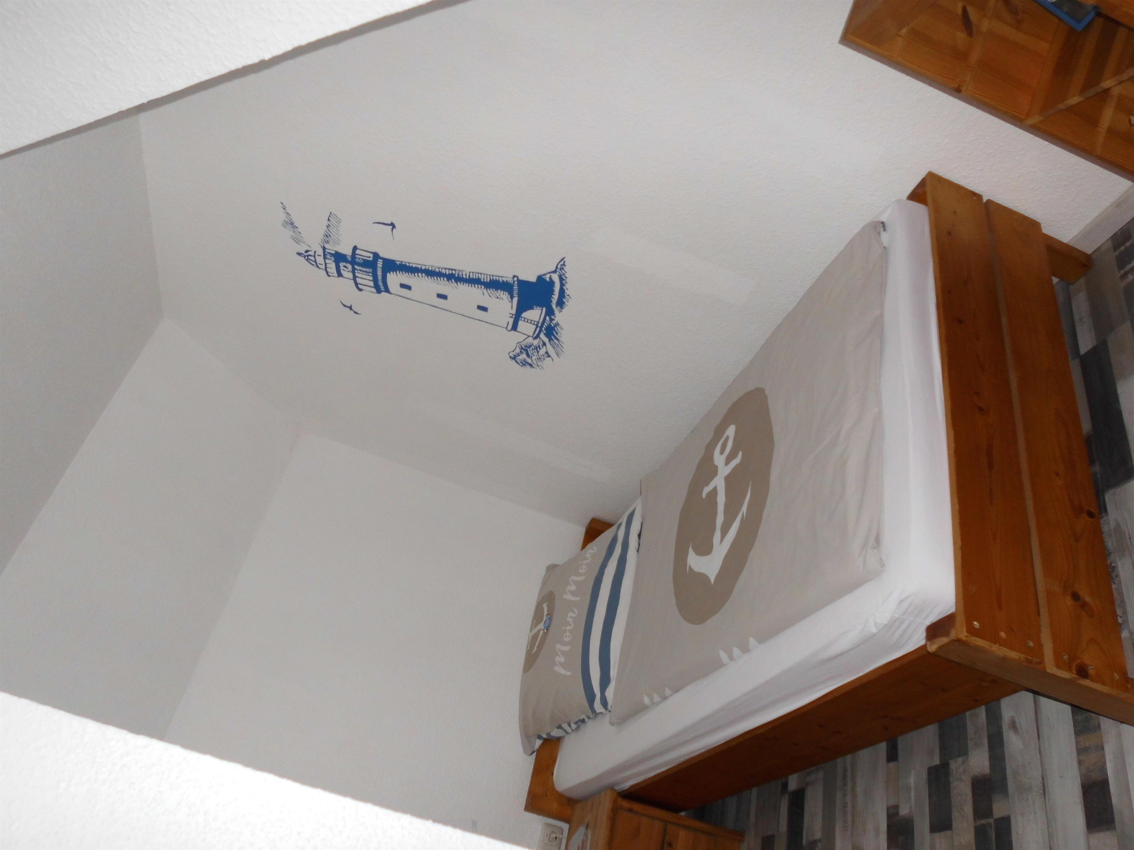 einem Schlafzimmer mit Doppelbett , ein Schlafzimmer mit Einzelbett und einem Badezimmer mit Dusche und WC, sowie eine kleine Terrasse.