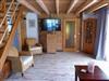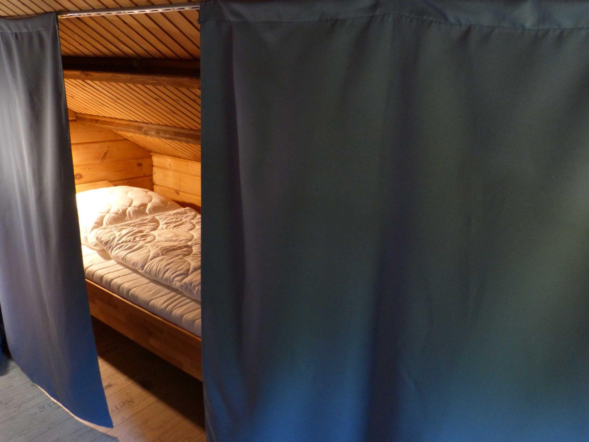 Im Dachgeschoss ist der Schlafbereich. Dort befinden sich ein Doppelbatt (1,80m x 2m), und zwei Einzelbetten (0,90m x 2m) Die Einzelbetten sind vom Doppelbett durch einen blickdichten Vorhang getrennt.