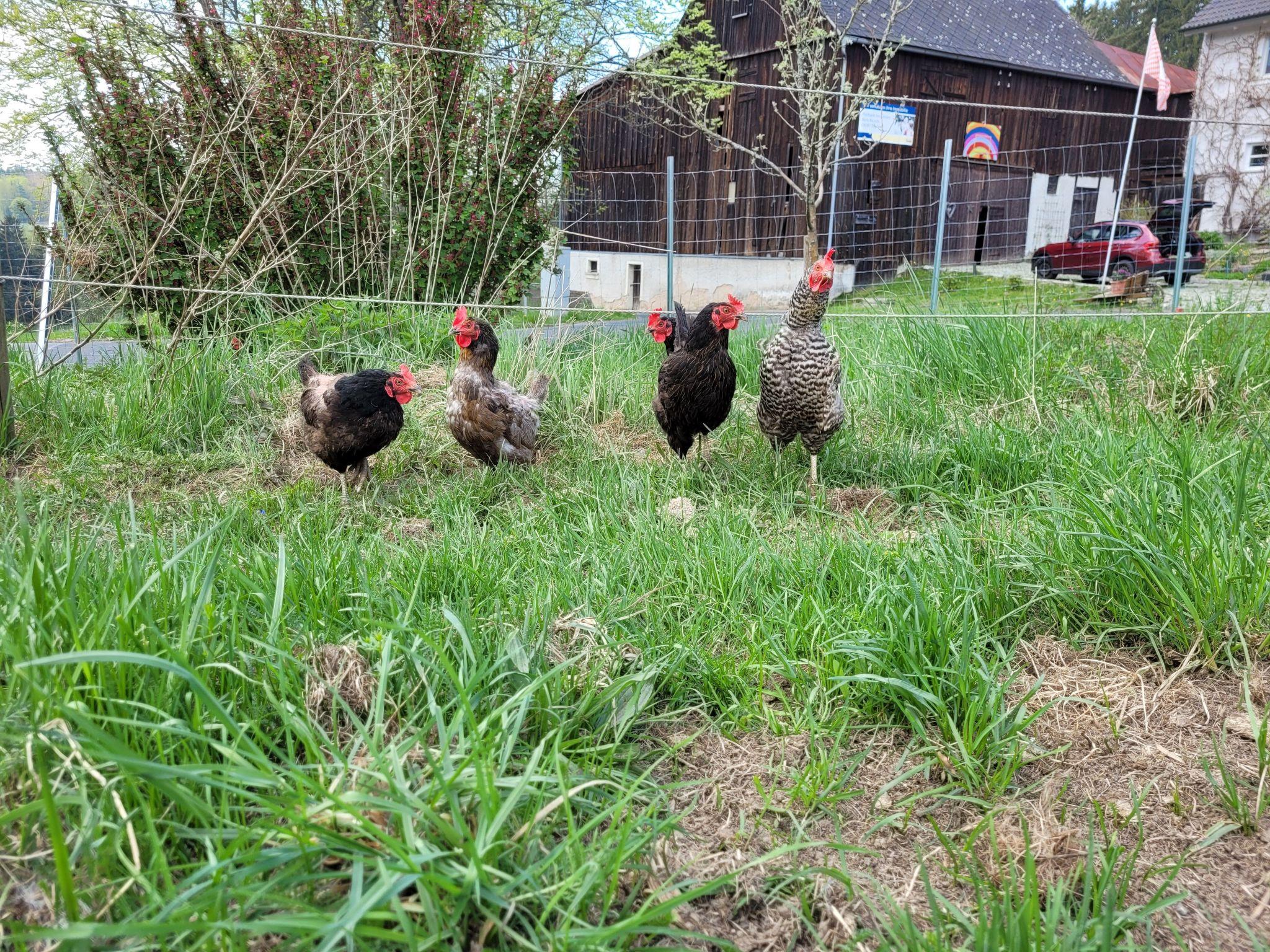 Die Wohnung befindet sich im Dachgeschoss. Das Dach wurde stark gedämmt, so dass man nicht befürchten muss, dass man im Sommer da oben kocht und im Winter friert :). Auf dem Hof leben zwei Pferde und Hühner. Es gibt einen Aufenthaltsraum in der Scheune mit Dart, Kicker und Tischtennisplatte. Für Kinder haben wir zusätzlich noch ein Baumhaus und zwei Berg Go-Karts.
