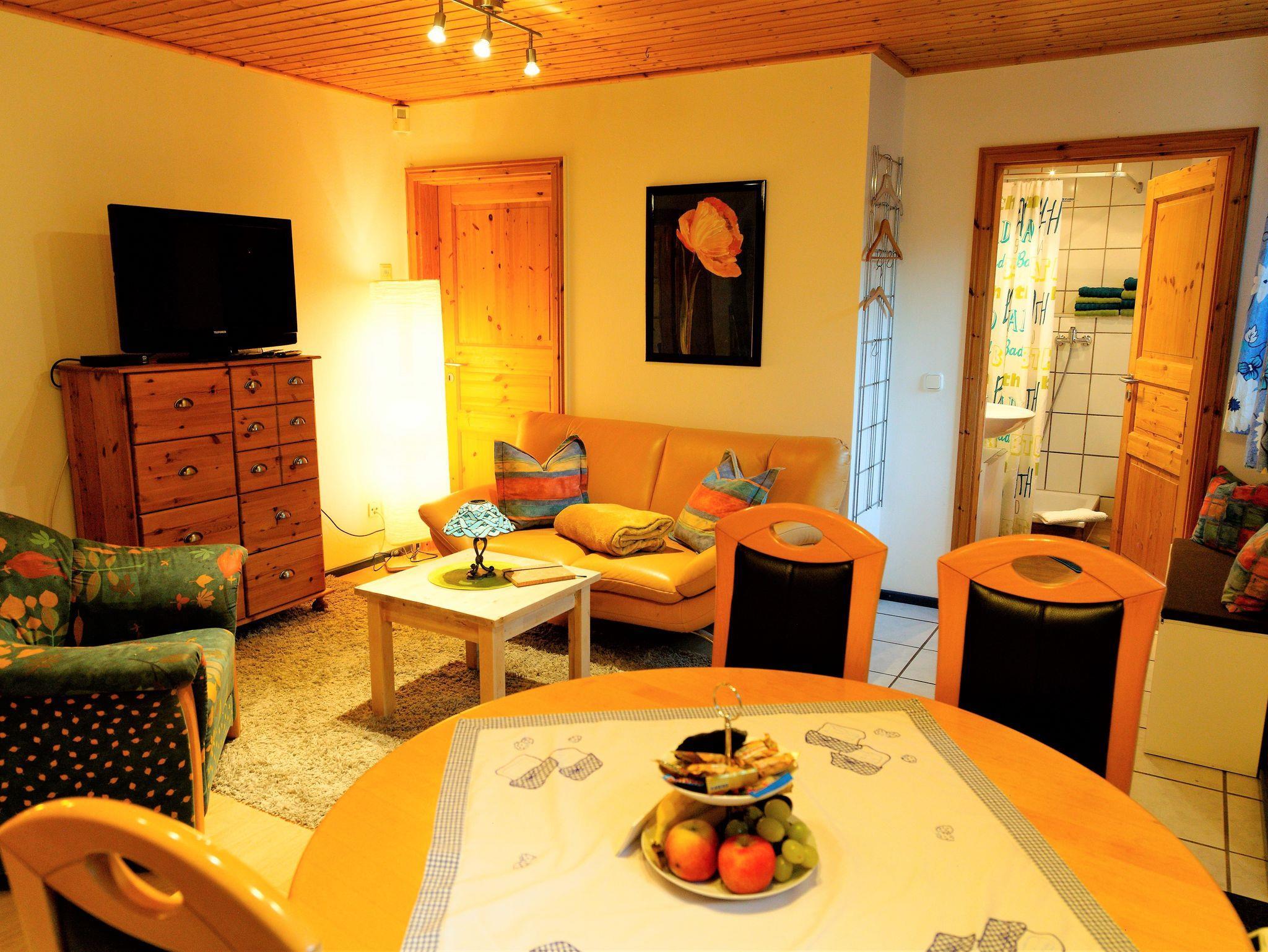 Der gemütliche Wohn- und Essbereich mit Sofa,-Satelliten- TV, Radio und Esstisch läd zu Verweilen ein.