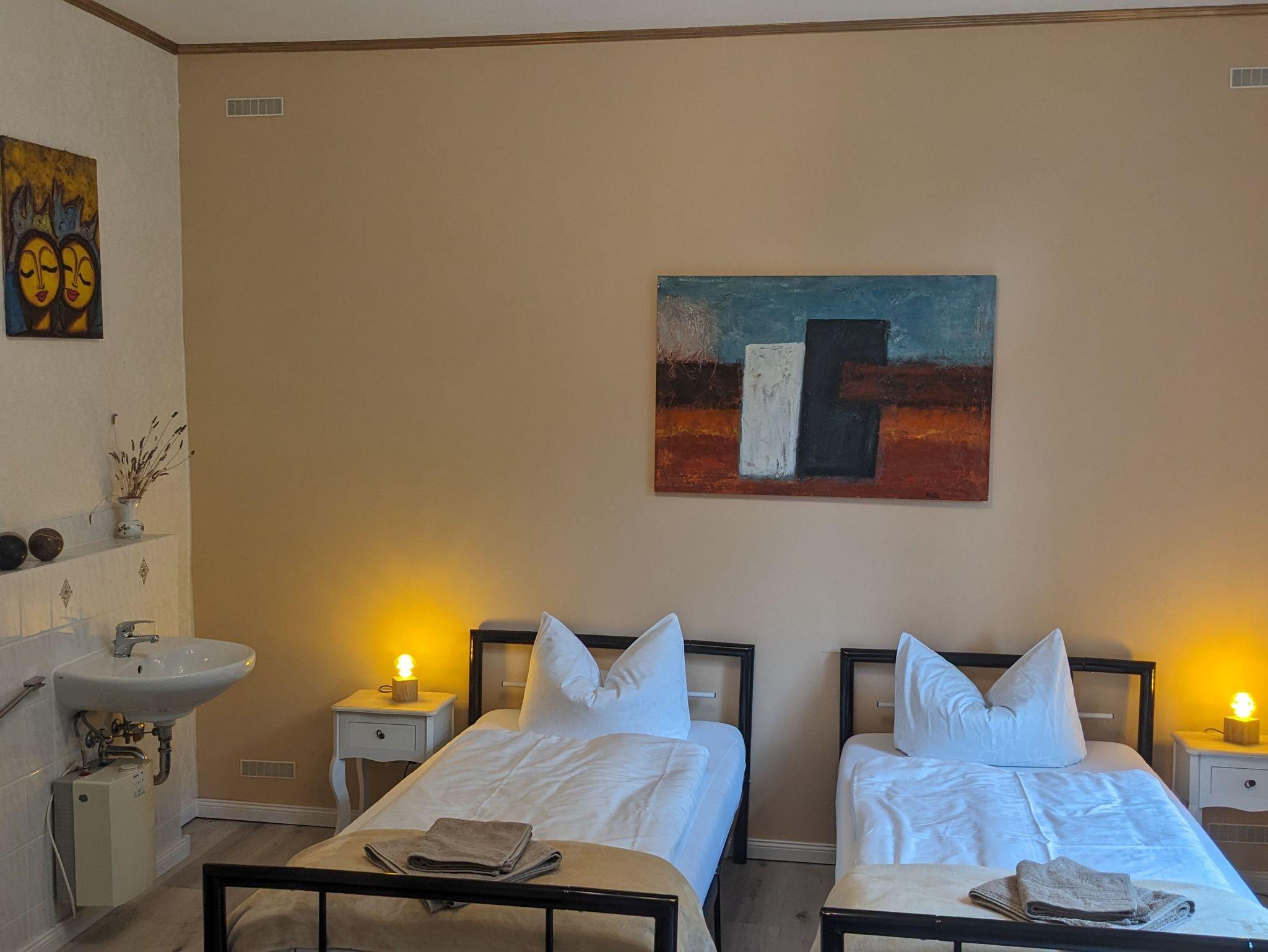 Es stehen 2 Schlafzimmer mit Doppelbett, bzw. 2 Einzelbetten zur Verfügung. Gerne stellen wir Ihnen auch ein Kinderbett bereit.