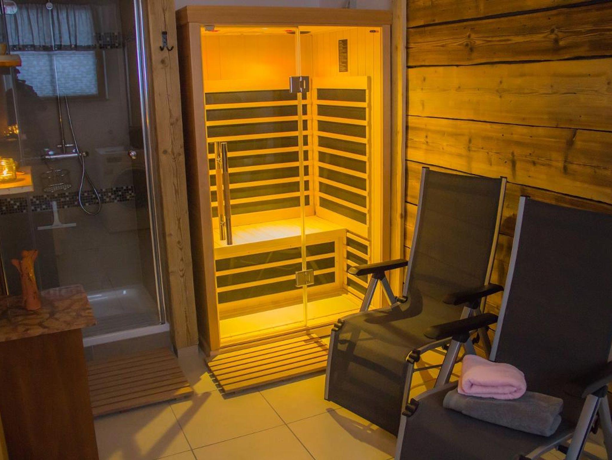 Das kleine Nest gleich neben der Stubn bietet Entspannung und wohlige Wärme. Die Infrarotkabine mit Platz für 2 Personen verspricht entspannende Wärme durch und durch. Wellnessliegen und Dusche dürfen natürlich auch nicht fehlen. Die Nutzung ist selbstverständlich uneingeschränkt im Übernachtungspreis inklusive.