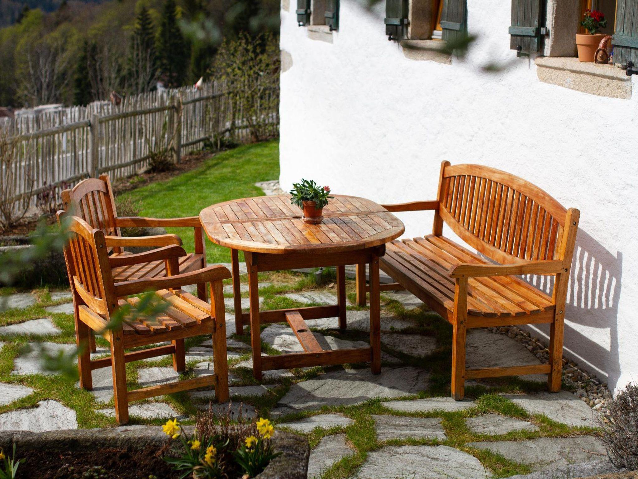 Auf der großzügig gestalteten Terrasse mit gemütlicher Sitzmöglichkeit können Sie entspannt Kraft tanken und die Ruhe des bayrischen Waldes genießen. Ein atemberaubender Fernblick sowie Blick auf die umliegenden Berge lädt zum Verweilen ein. Für einen gemütlichen Grillabend ist natürlich gesorgt. Dank des vorhandenen Kohlegrills können Sie den Abend entspannt auf der Terrassn ausklingen lassen.