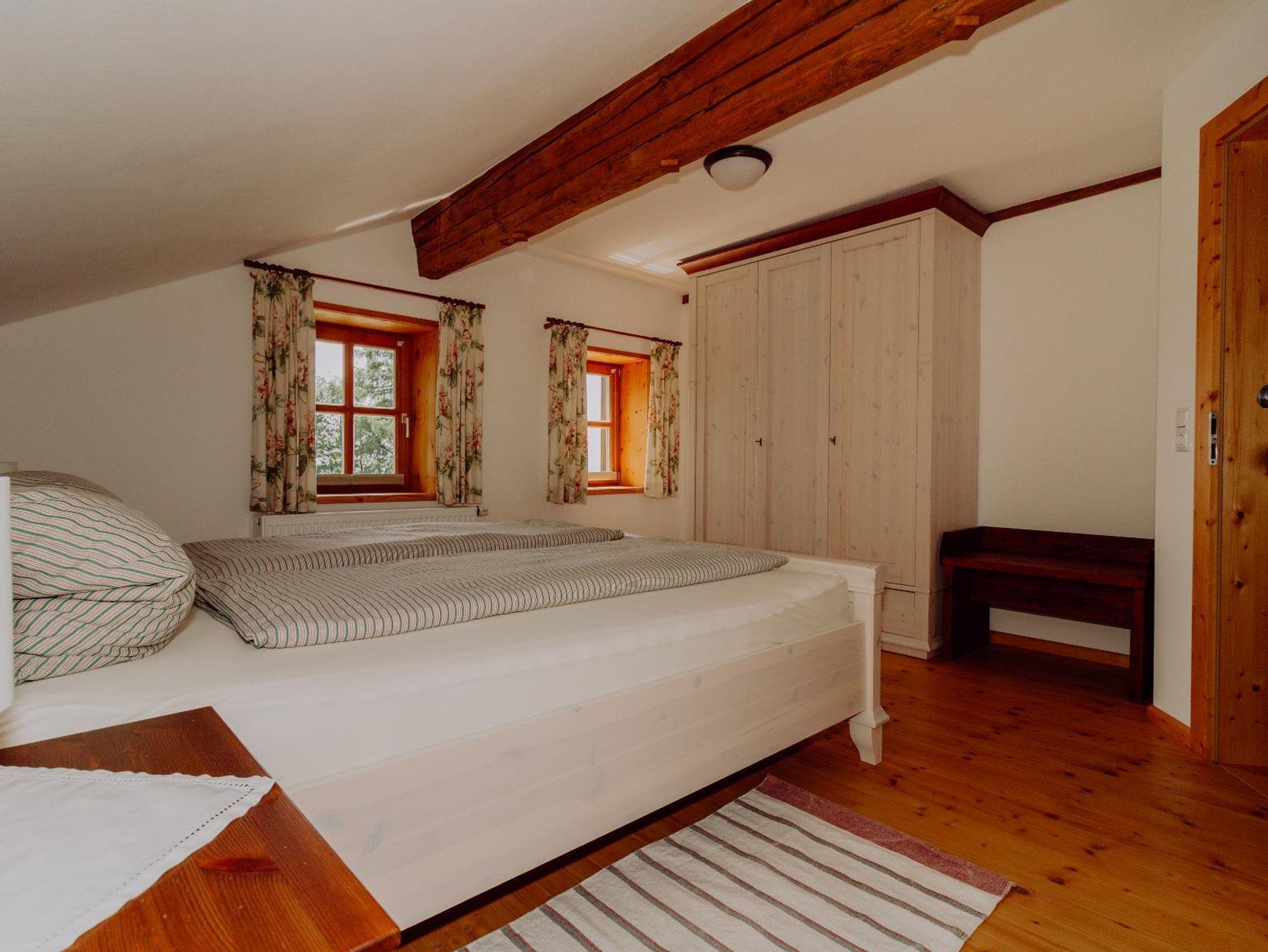 Wohlig und kuschelig wird´s in der Kammer im 1. Stock. Natürliche Materialien wie Holzboden, Massivholzbett und Baumwollwäsche fördern einen erholsamen Schlaf. Das Doppelbett ist 1,80 m breit und hat eine Länge von 2,10 m und verfügt über Allergikerbetten.