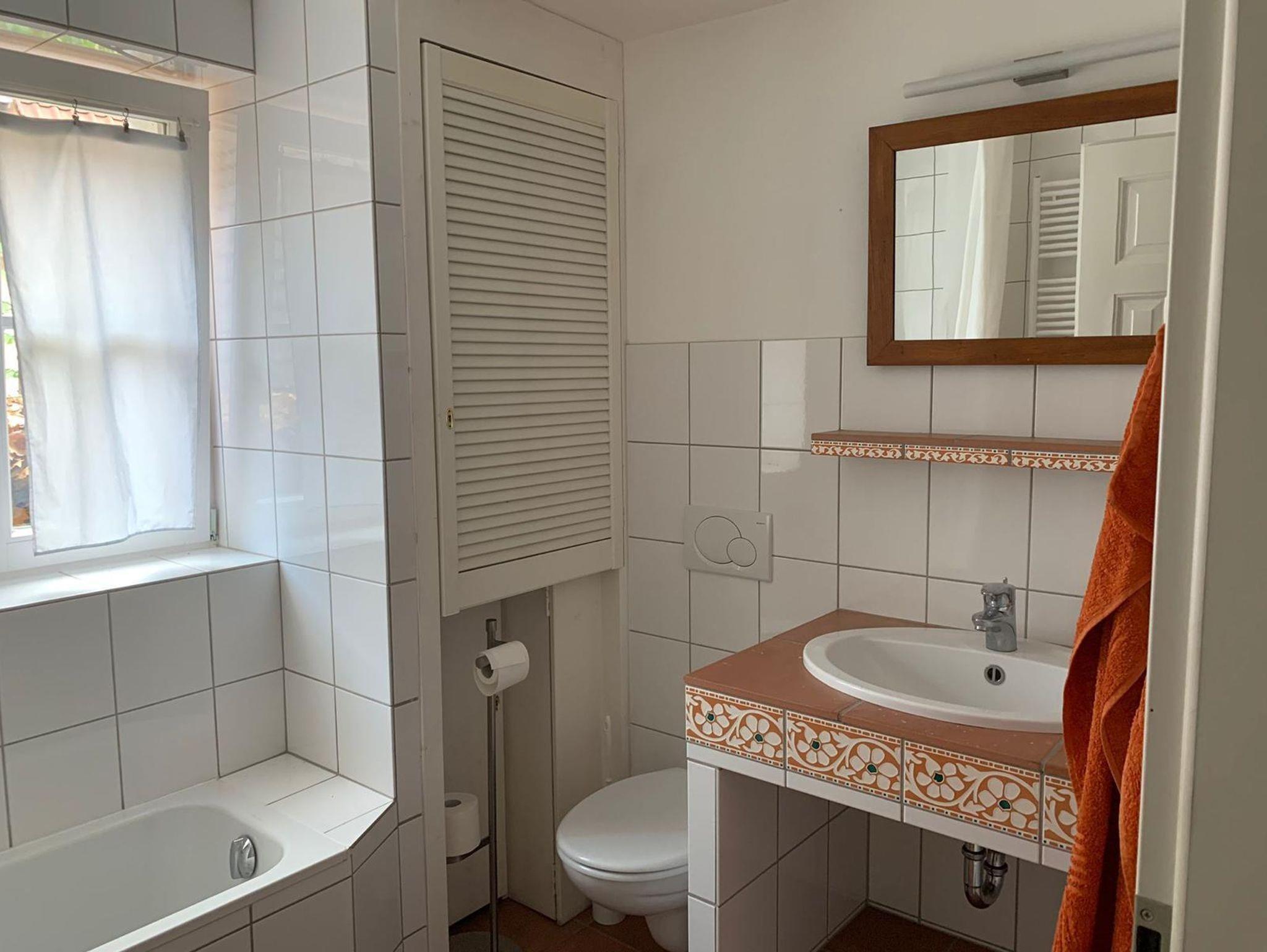 Willkommen in der Ferienwohnung Steinhauser im alten Winzerhaus. Begleiten Sie uns vom Hof (mit Parkmöglichkeit) nach oben auf die große, teilweise überdachte Terrasse, die einen tollen Blick auf den Übergang vom Garten zum Wald bietet. Genießen Sie hier einen entspannten Abend bei einem schönen Glas Pfälzer Wein. Von der Terrasse gelangen Sie in das großzügige Wohnzimmer, gestaltet in einer Kombination aus Alt und Neu, ein Konzept, das sich mehrfach wiederholt. Die großzügige Eckcouch lädt zum entspannten Beieinandersitzen oder auch zum Fernsehen ein. Vom Wohnzimmer mit Ausgang zu der zweiten, kleineren, überdachten Terrasse an der Westseite, mit Blick über den Garten in den sich daran anschließenden Wald, gelangen Sie über die geschwungene Treppe in das Schlafzimmer mit Doppelbett (auch getrennt stellbar, offene Fussteile) im Obergeschoss. Hier haben Sie aus 2 Fenstern einen schönen Ausblick auf den Pfälzerwald. Wieder zurück im Wohnzimmer, geht es weiter in die Wohnküche. Hier finden Sie neben der üblichen Küchenzeile einen Esstisch für 4 Personen und eine bequeme Couch zum gemütlichen Fernsehen. Dann geht es weiter in das Tageslichtbad mit Badewanne, Waschbecken und WC. Daneben befindet sich das 2. Schlafzimmer mit 2 Betten (auch hier offene Fussteile) und großem Einbauschrank. Bei einem kleinen Rundgang können Sie vom auf verschiedenen Ebenen angelegten Garten weite Ausblicke über die schöne Pfalz genießen.