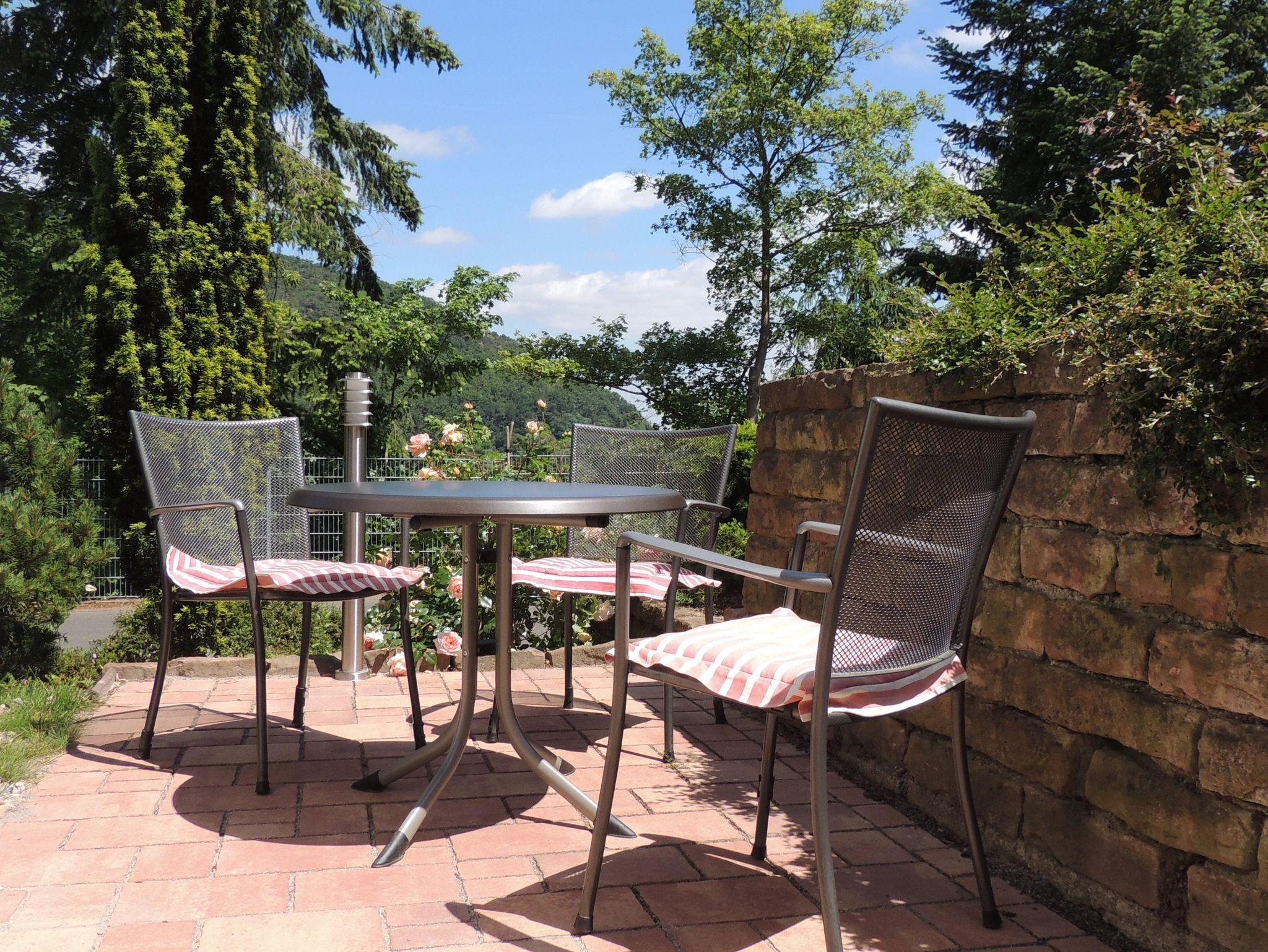 Unsere Ferienwohnung (49 qm für 2 - 3 Personen) ist im Erdgeschoss unseres Wohnhauses und hat einen separaten Eingang. Sie liegt in einer sehr ruhigen Sackstraße, ca. 150 m oberhalb der Altstadt. Die nächste Haltestelle für den öffentlichen Nahverkehr ist ca. 300 m entfernt, der Fußweg in die Stadt ist ca. 1,5 km. Die Wohnung liegt sehr nahe und gut zu Fuß erreichbar an den Wanderwegen des Pfälzerwaldvereins, des Pfälzer Weinsteigs und des Neustadter Drumrumwegs. Es gibt einen eigener Freisitz vor dem Haus. Haustiere sind willkommen. Unterstellmöglichkeit für Fahrräder und Motorräder in abschließbarer Garage sind vorhanden. Kostenlose WLan-Verbindung. Badewanne mit Dusche, hoher Einstieg.