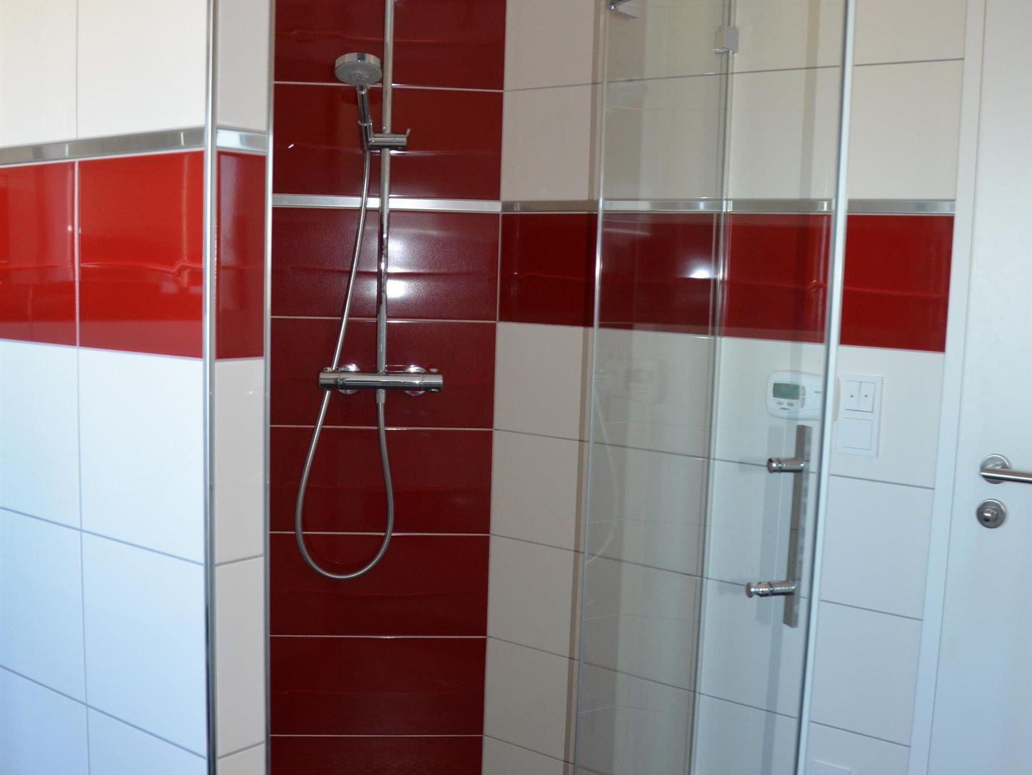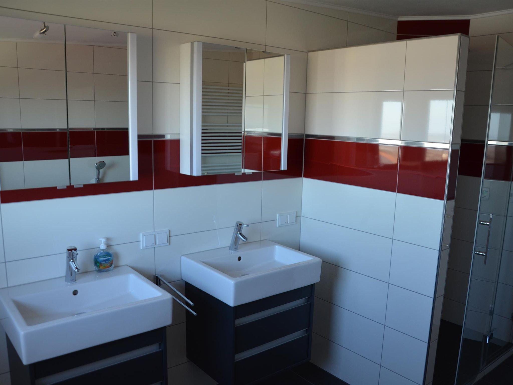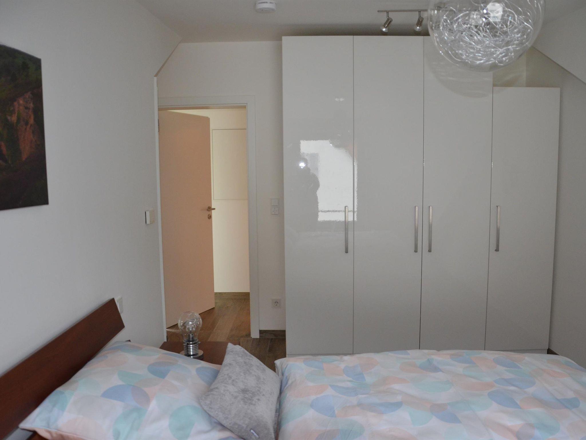 Ein Schlafzimmer mit Doppelbett, ein ein Badezimmer mit großer Dusche, Badewanne, WC, zwei Waschbecken und eine Loggia mit Tisch und Stühlen/Liegestühlen komplementieren die Ferienwohnung. Fußbodenheizung, Kabel-TV und kostenloser Internetanschluss (LAN-Netzwerk/Wlan in allen Räumen) runden den Komfort ab.