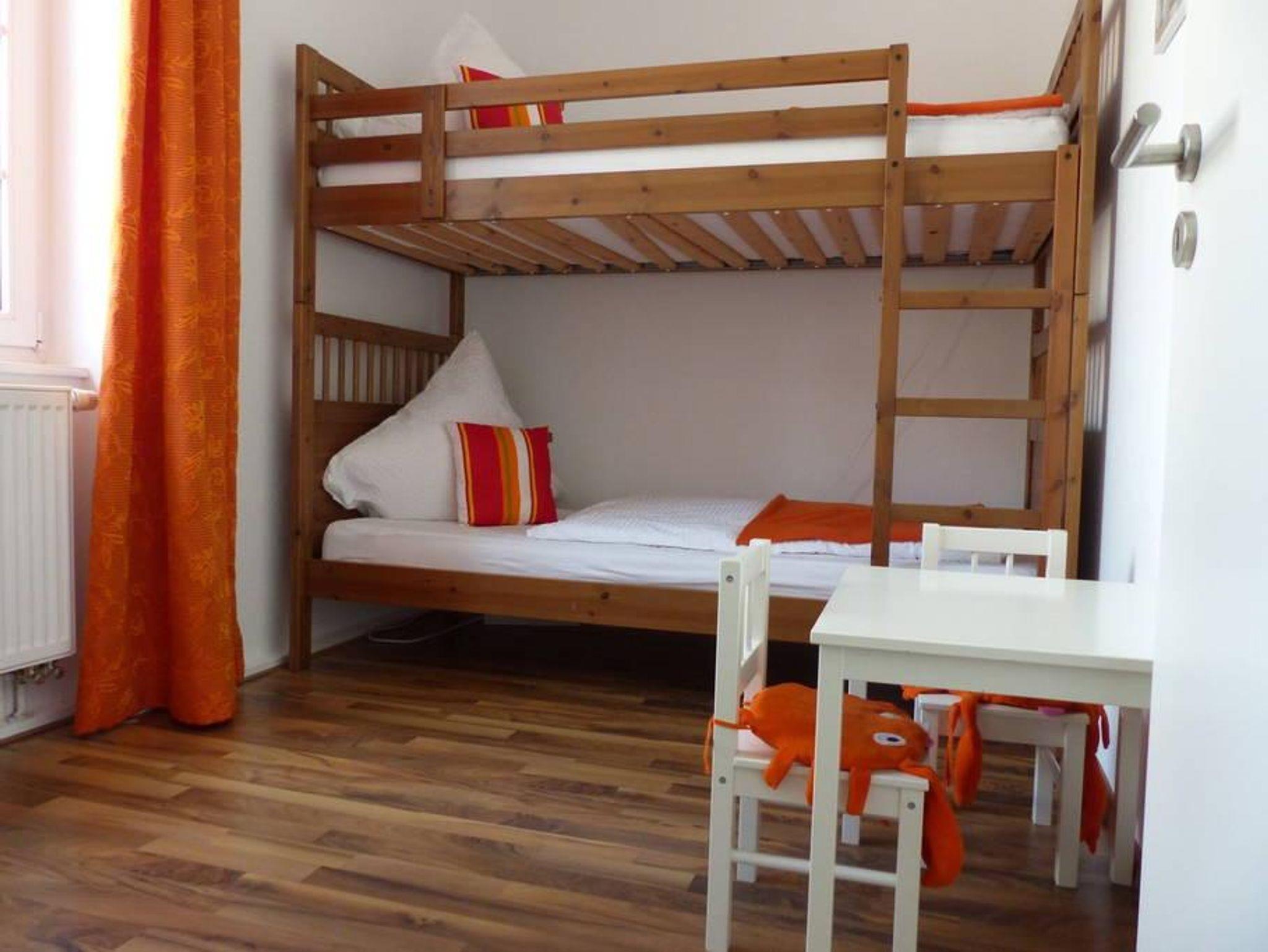 Ferienwohnung Dornfelder 60 m². Im 1. OG. 1 Schlafzimmer für 2 Personen im Doppelbett + 1 Schlafzimmer für 2 Personen (Kinder) im Etagenbett. Badezimmer mit Badewanne.