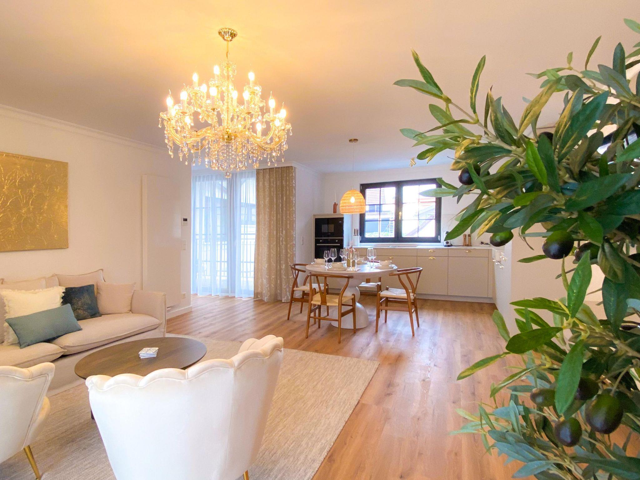 Dennoch bietet Ihnen diese Wohnung alles, was einen zum Verweilen und entspannen einlädt. Der klimatisierte Wohnbereich führt direkt zu Ihrem persönlichen und großen Sonnenbalkon mit ausreichend Sitzmöglichkeiten und Blick zum Garten. Genießen Sie hier Ihren Wein bei Sonnenschein und lassen Sie die Zeit einfach mal stillstehen.
