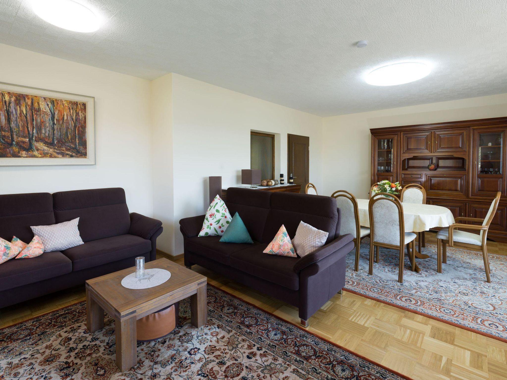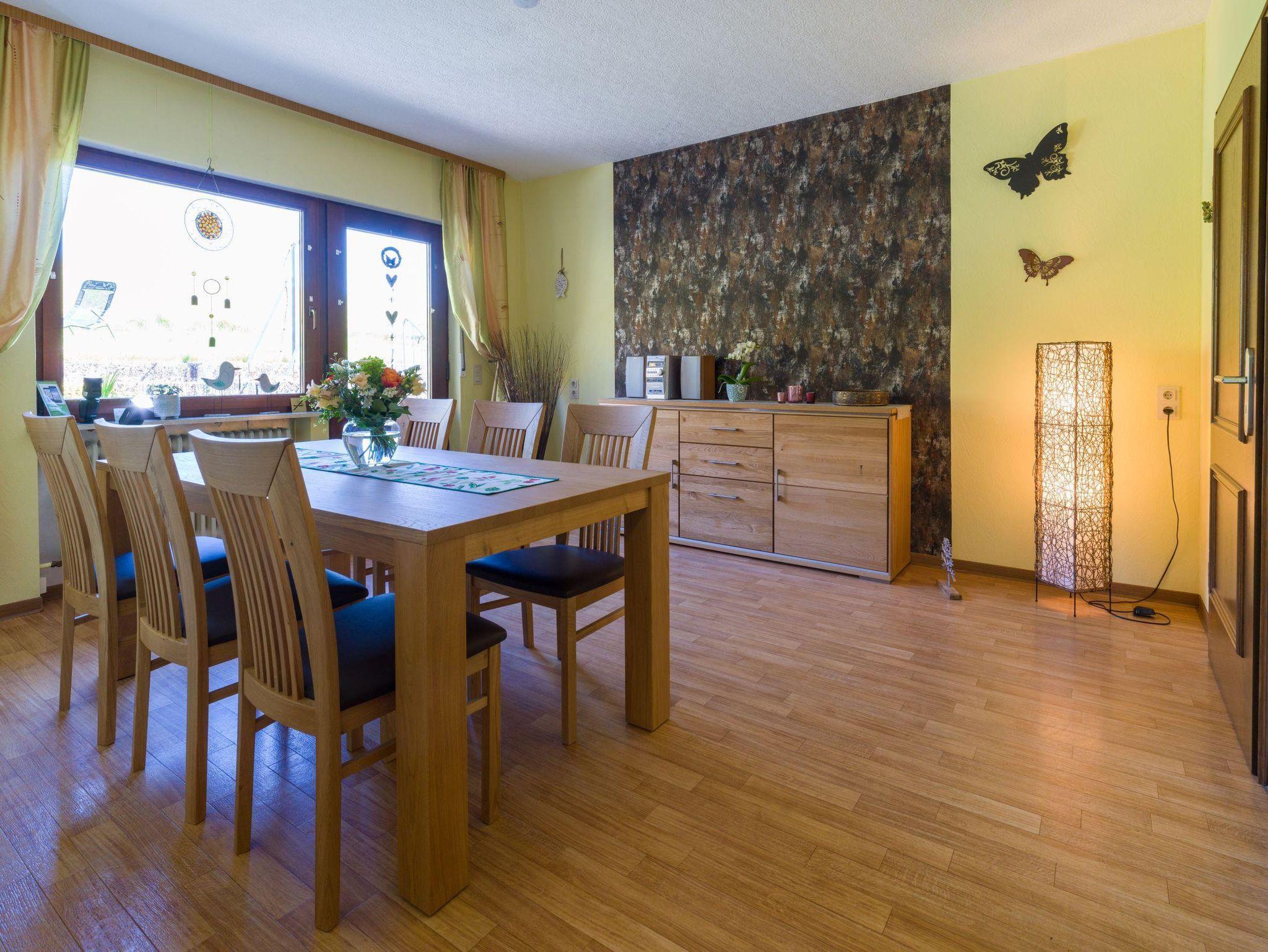 Unser Haus bietet auf einer Etage Platz für 1-6 Personen. Das gemütliche Wohnzimmer mit Flachbild-TV, DVD-Player und Zugang zum Balkon lädt zum Verweilen ein. Die komplett ausgestattete Küche mit Geschirrspüler, Kühlschrank, Herd, Backofen, Mikrowelle, Wasserkocher, Toaster und Kaffeefiltermaschine lässt keine Wünsche offen. Im Spielzimmer neben der Küche können sich die kleinen Gäste beschäftigen. Das Badezimmer ist ausgestattet mit Dusche, Badewanne, Bidet, WC und Waschbecken. Es gibt zusätzlich ein separates WC mit Waschbecken und Urinal. Das Ferienhaus verfügt über 3 Schlafzimmer mit einem Doppel, zwei Einzelbetten und einem Etagenbett. Das 2022 neu möblierte Esszimmer rundet das Gesamtbild ab. Zum Reinigen Ihrer Kleidung steht eine Waschmaschine im Keller gegen Gebühr zur Verfügung. Ein kleiner Gefrierschrank steht ebenfalls im Keller für Sie zur Nutzung bereit. Vor allem im Sommer können Sie entspannte Abende am Bostalsee oder Grillabende in unserem Garten verbringen. Bitte beachten Sie, dass keine Haustiere erlaubt sind und das Rauchen im Haus, Wohnung oder auf dem Balkon untersagt ist. Den Parkplatz vor dem Haus und WLAN können Sie kostenfrei nutzen. Sollten Sie mit Fahrrad oder Motorrad anreisen bieten wir Ihnen eine Garage zum sicheren Abstellen dieser Fahrzeuge an.