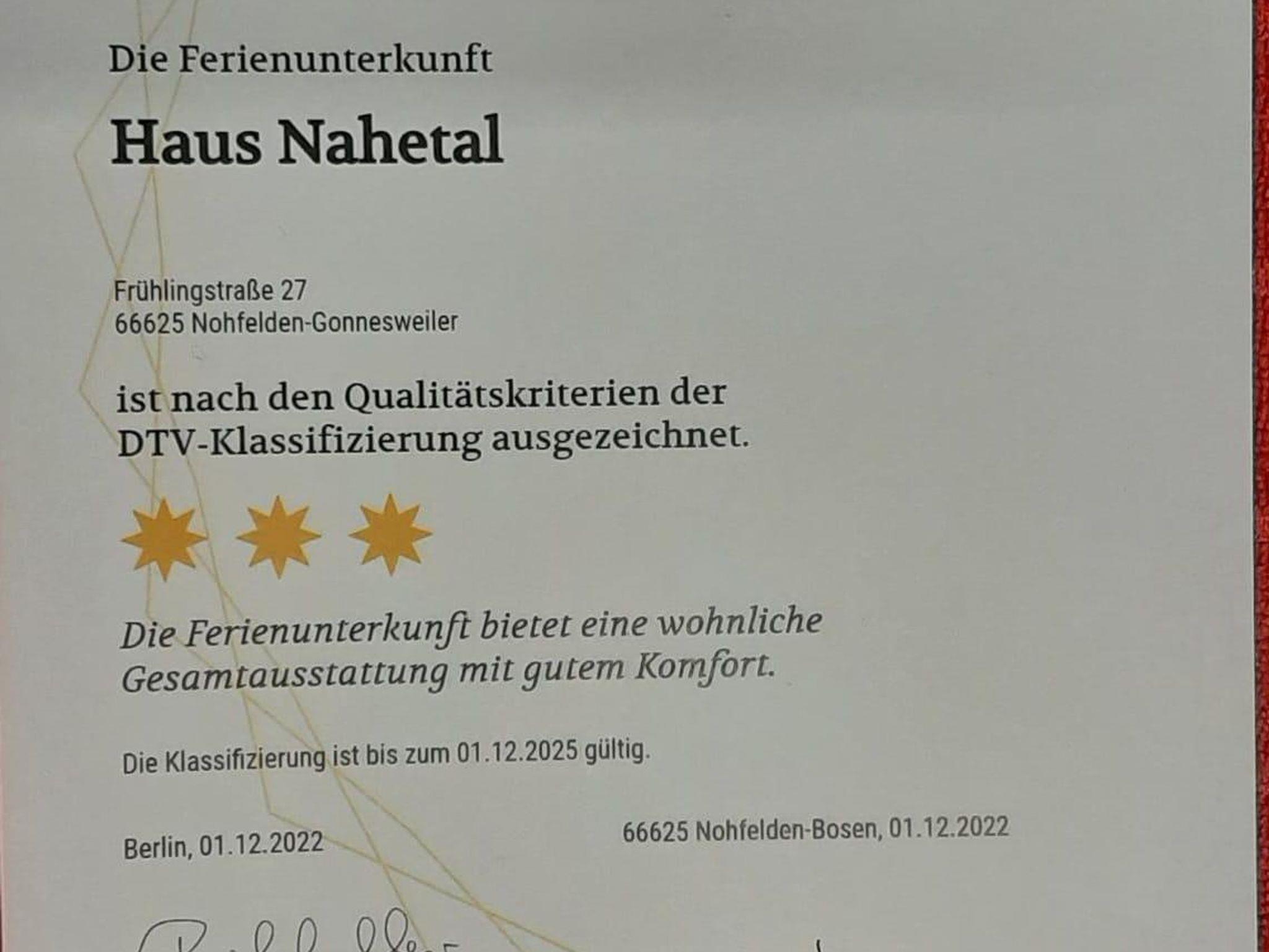 Die Ferienwohnung „Haus Nahetal“ lädt zum Entspannen in sehr ruhiger Lage mit Blick auf den Waldrand ein. Sie bietet Ihnen außerdem einen Panoramablick über Gonnesweiler und das Nahetal, wo die „Nahe“ von ihrem Ursprung der Nahequelle in Selbach durch Gonnesweiler bis Bingen in den Rhein fließt. Zur Ferienwohnung gehört ein Garten. Dieser kann zum Grillen und Spielen der Kinder genutzt werden. In etwa 5 Minuten erreichen Sie den Bostalsee mit seinem großen Angebot für Wassersport, Wandern, Radfahren, Spazierengehen oder in einem der Restaurants rund um den See Einkehr zu halten. Mit dem PKW sind sie in 4 Minuten in Türkismühle, hier gibt es Einkaufsmöglichkeiten, Apotheke, Arzt, Postfiliale. Auch der Bahnhof liegt in unmittelbarer Nähe. Die Umgebung bietet viele Ausflugsziele Aktivitätsmöglichkeiten, wie Radfahren, Bademöglichkeit in einem der beiden Freibäder am Bostalsee oder im Hallenbad „Schaumbergbad“ in Theley. Die Kreisstadt Sankt Wendel erreichen Sie mit dem PKW oder der Bahn in ca. 20 Minuten.