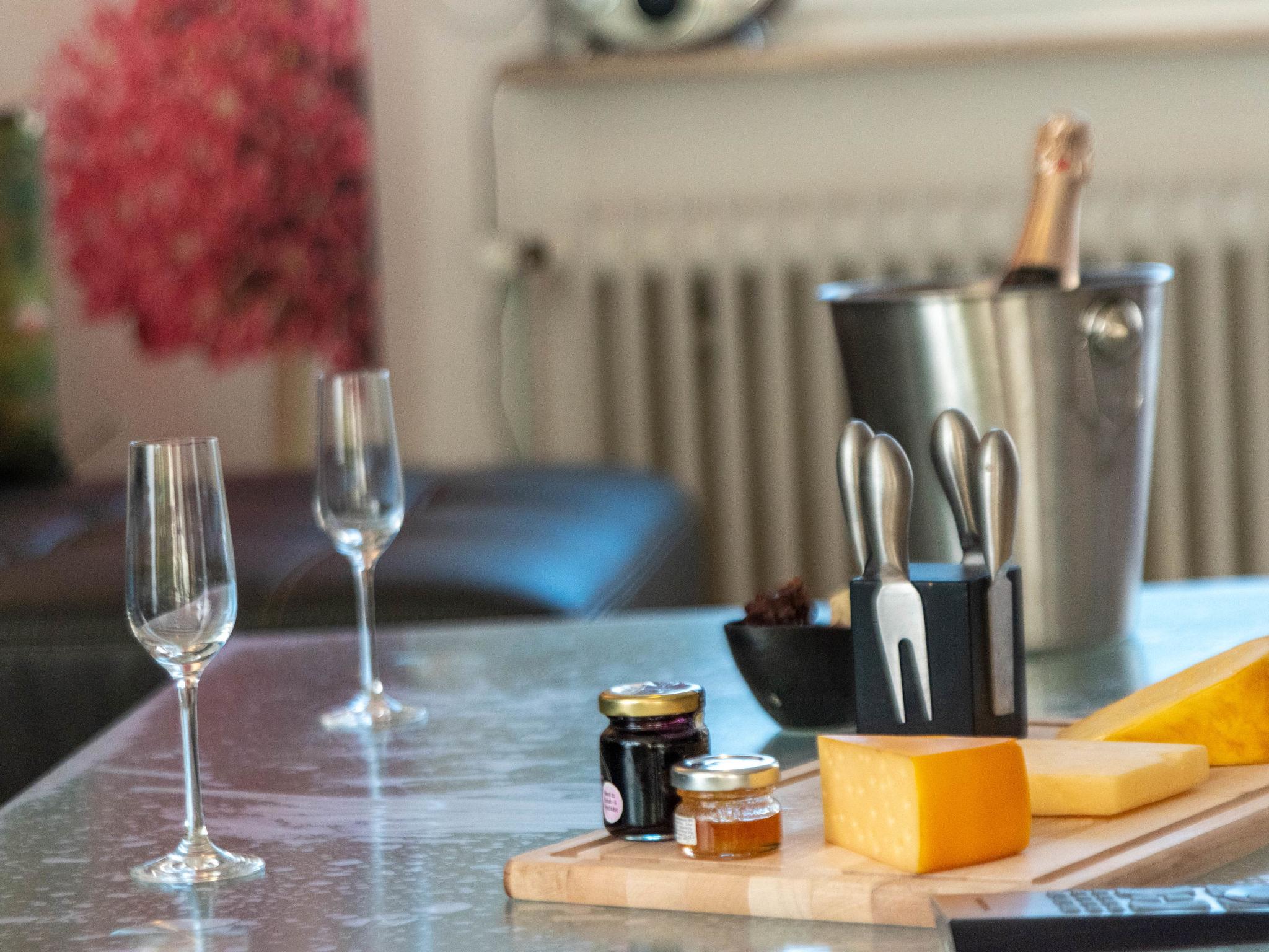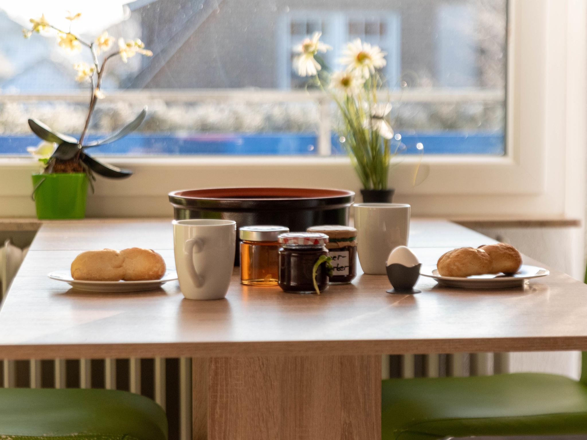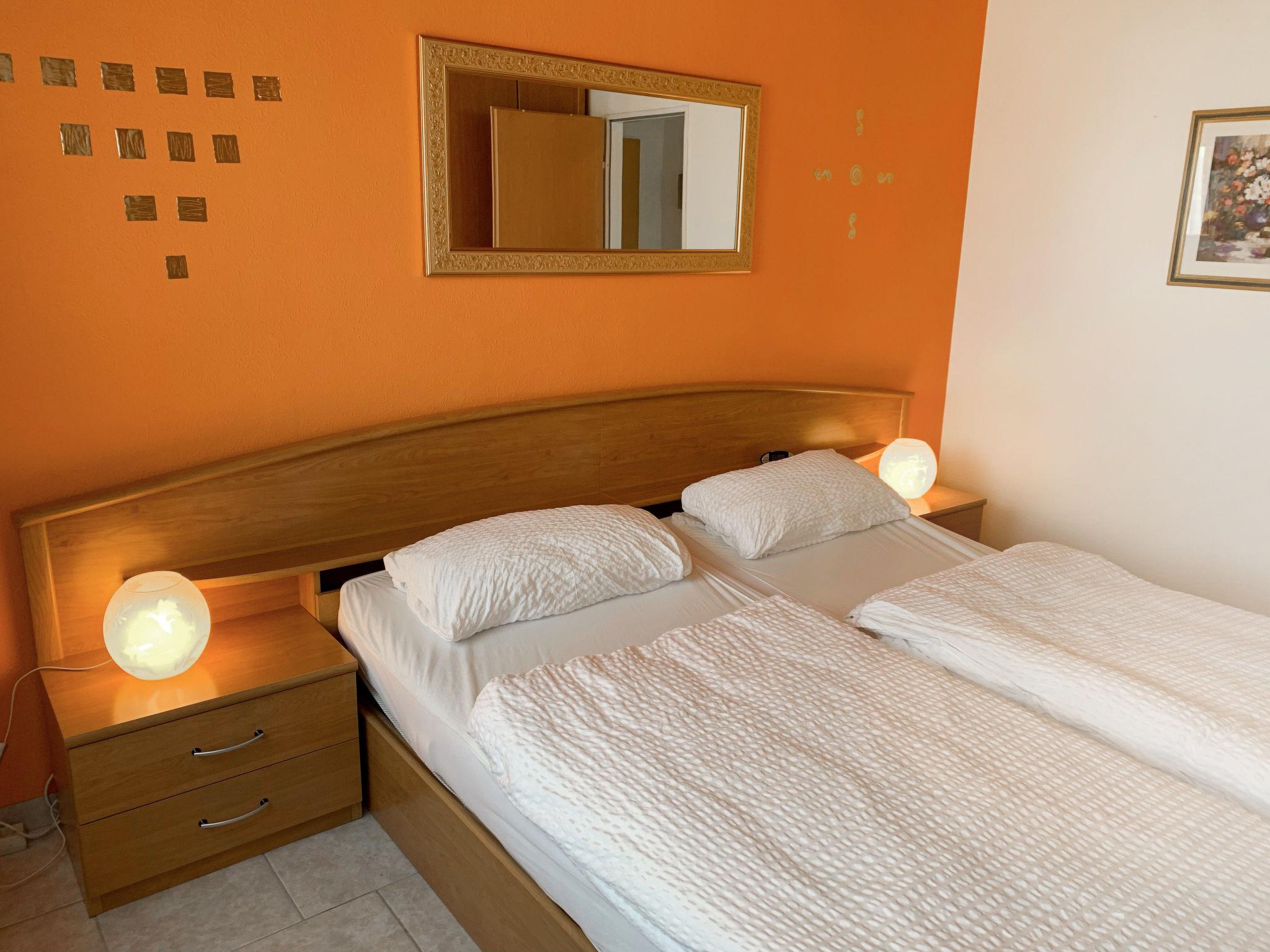3-Zimmer-Wohnung 75 m2 im 1. Stock. Schön und gemütlich eingerichtet: Wohn-/Esszimmer mit Kabel-TV (Flachbildschirm), Radio. Ausgang zum Balkon. 2 Zimmer, jedes Zimmer mit 1 Doppelbett (2 x 90 cm, Länge 200 cm). Kleine Küche (Backofen, 4 Glaskeramikplatten, Toaster, Wasserkocher, Mikrowelle, elektrische Kaffeemaschine). Dusche/WC. 2 Balkone. Balkonmöbel. Zur Verfügung: Waschmaschine, Kinderhochstuhl (extra). Internet (Wireless LAN, gratis). Bitte beachten: Nichtraucher-Unterkunft. Rauchmelder.