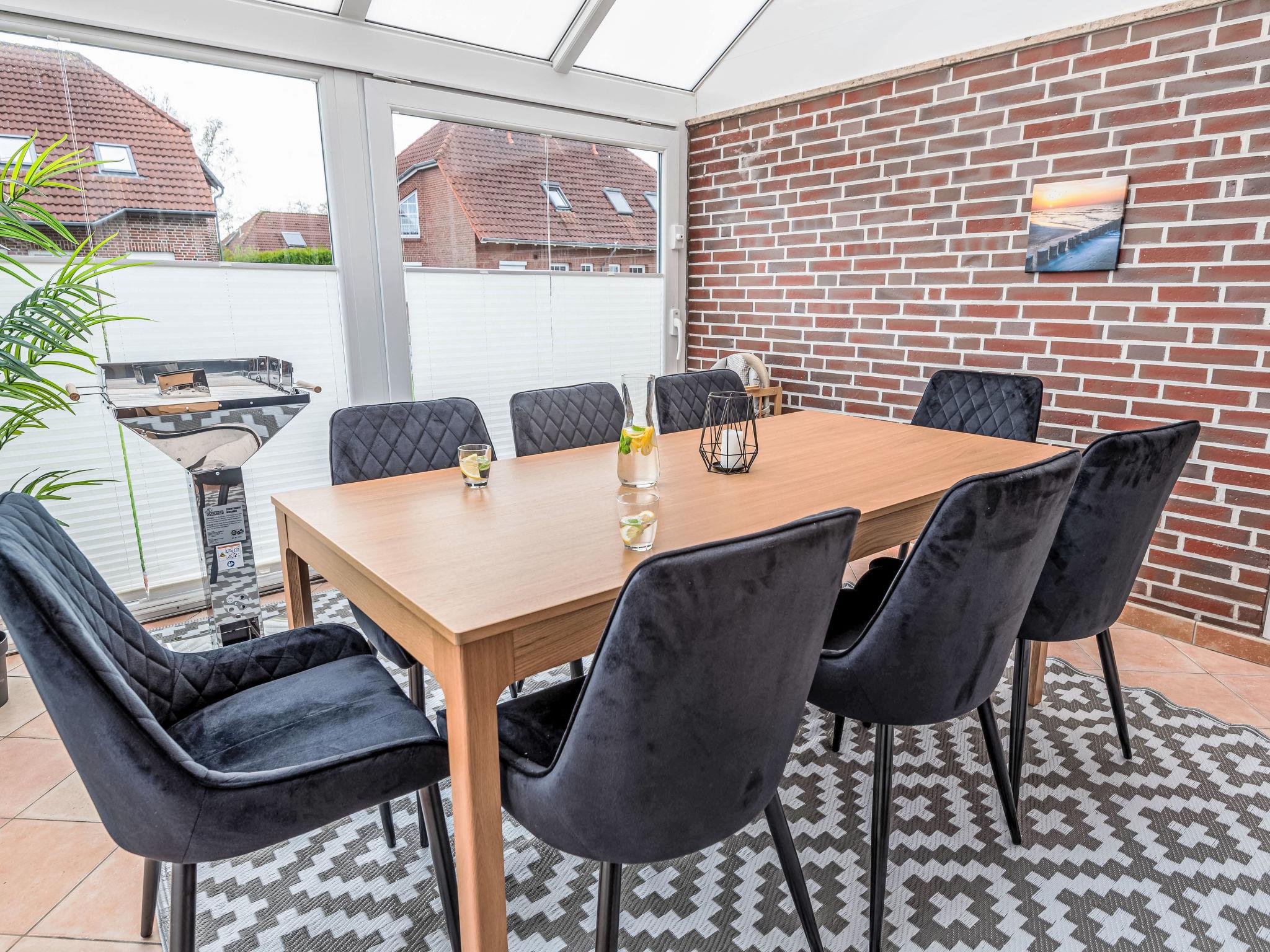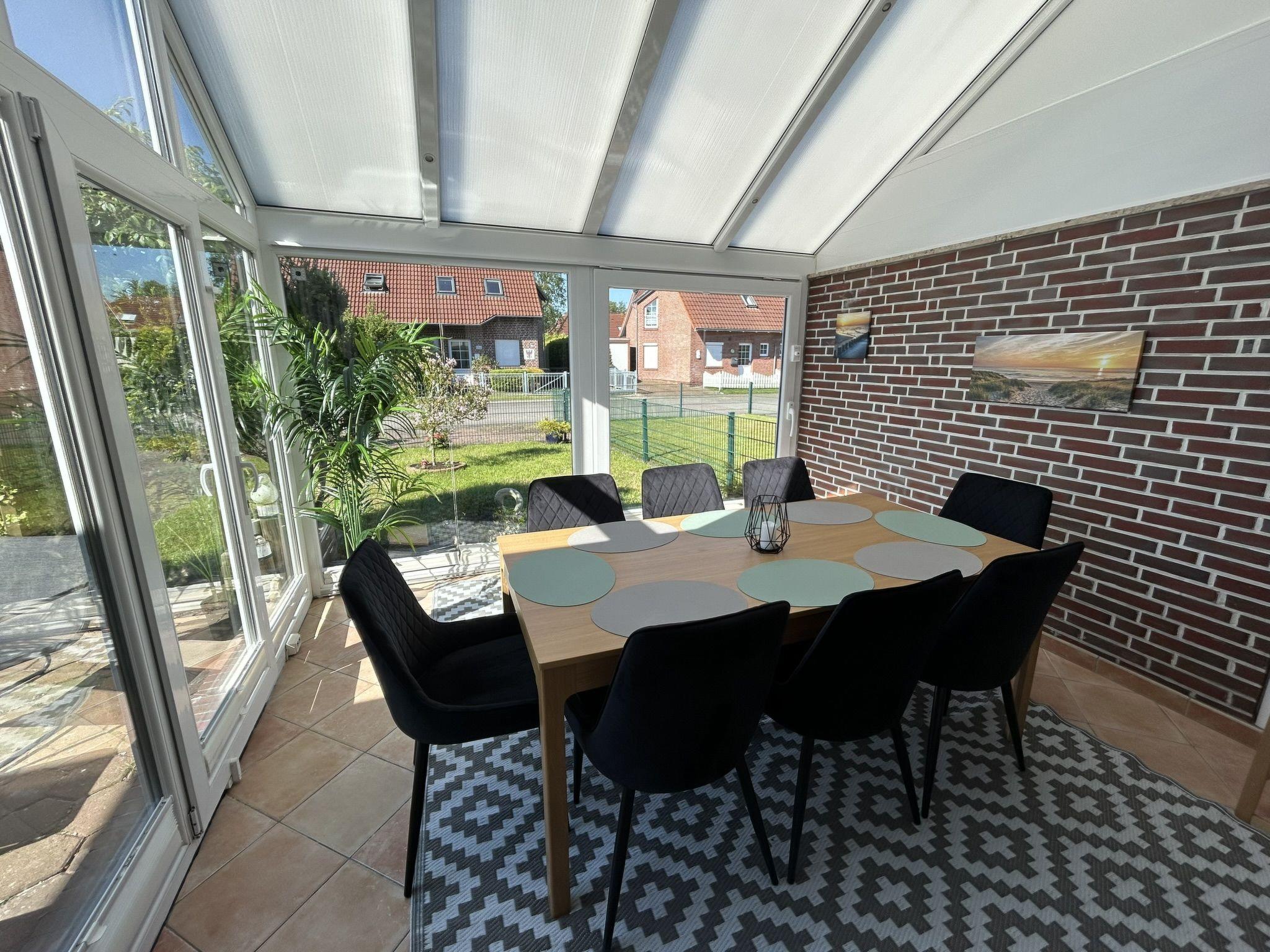 Modern eingerichtete Doppelhaushälfte im Herzen von Norddeich, ideal für Familien, mit Garten, WLAN und kurzer Strandnähe.