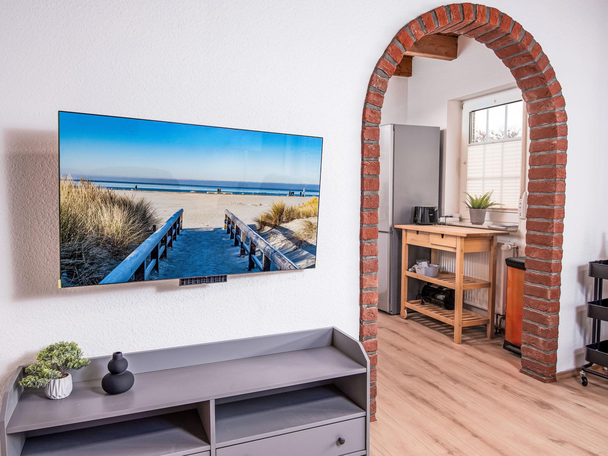 "Flunder", 6-Zimmer-Doppelhaushälfte 90 m2 auf 2 Stockwerken. Objekt geeignet für 6 Erwachsene + 2 Kinder. Teilweise renoviert im Jahre 2024, modern und geschmackvoll eingerichtet: Wohnzimmer mit Sat-TV (Flachbildschirm). 1 Zimmer mit 1 Doppelbett (2 x 90 cm, Länge 200 cm). 1 Kinderzimmer mit 1 x 2 Etagenbetten (90 cm, Länge 200 cm). Offene Küche (Backofen, Geschirrspüler, 4 Glaskeramikplatten, Toaster, Wasserkocher, elektrische Kaffeemaschine, Kapseln für die Kaffeemaschine (Senseo) extra). Dusche/WC. Obergeschoss: 1 Zimmer mit 2 Betten (100 cm, Länge 200 cm). 1 Zimmer mit 1 Doppelbett und Sat-TV (Flachbildschirm). Dusche/WC. Kleine Terrasse. Terrassenmöbel, Gartengrill, Wintergarten. Zur Verfügung: Waschmaschine, Kinderhochstuhl. Internet (Wireless LAN, gratis). Bitte beachten: geeignet für Familien. Rauchmelder. Das Haus verfügt über eine Workstation, 50mbit Wireless LAN und ein OLED Smart TV. Der Wintergarten ist beheizbar.