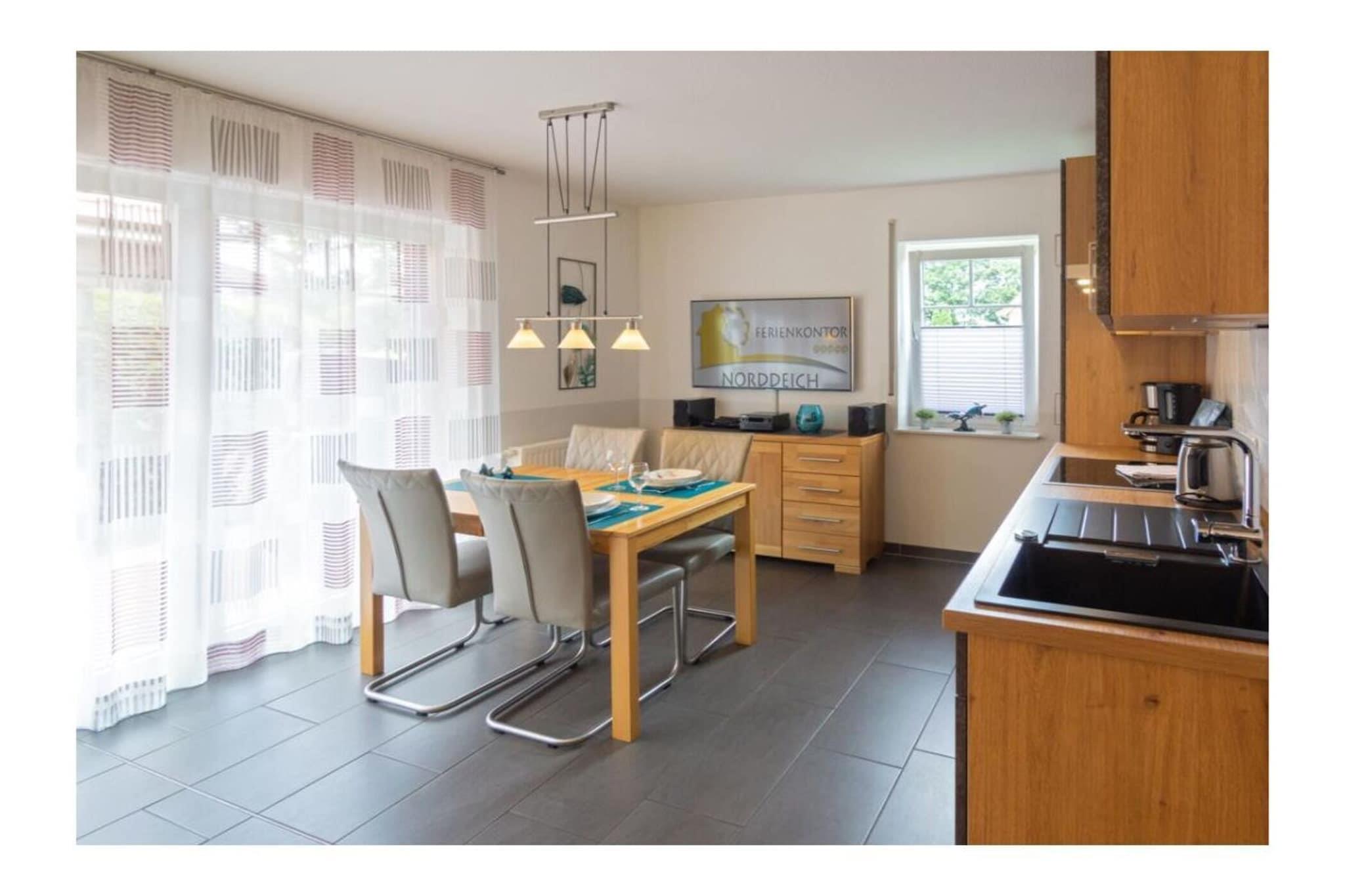 Die Ferienwohnung Meeresoase in Norddeich bietet modernen Komfort mit stilvoller Einrichtung und eigener Terrasse.