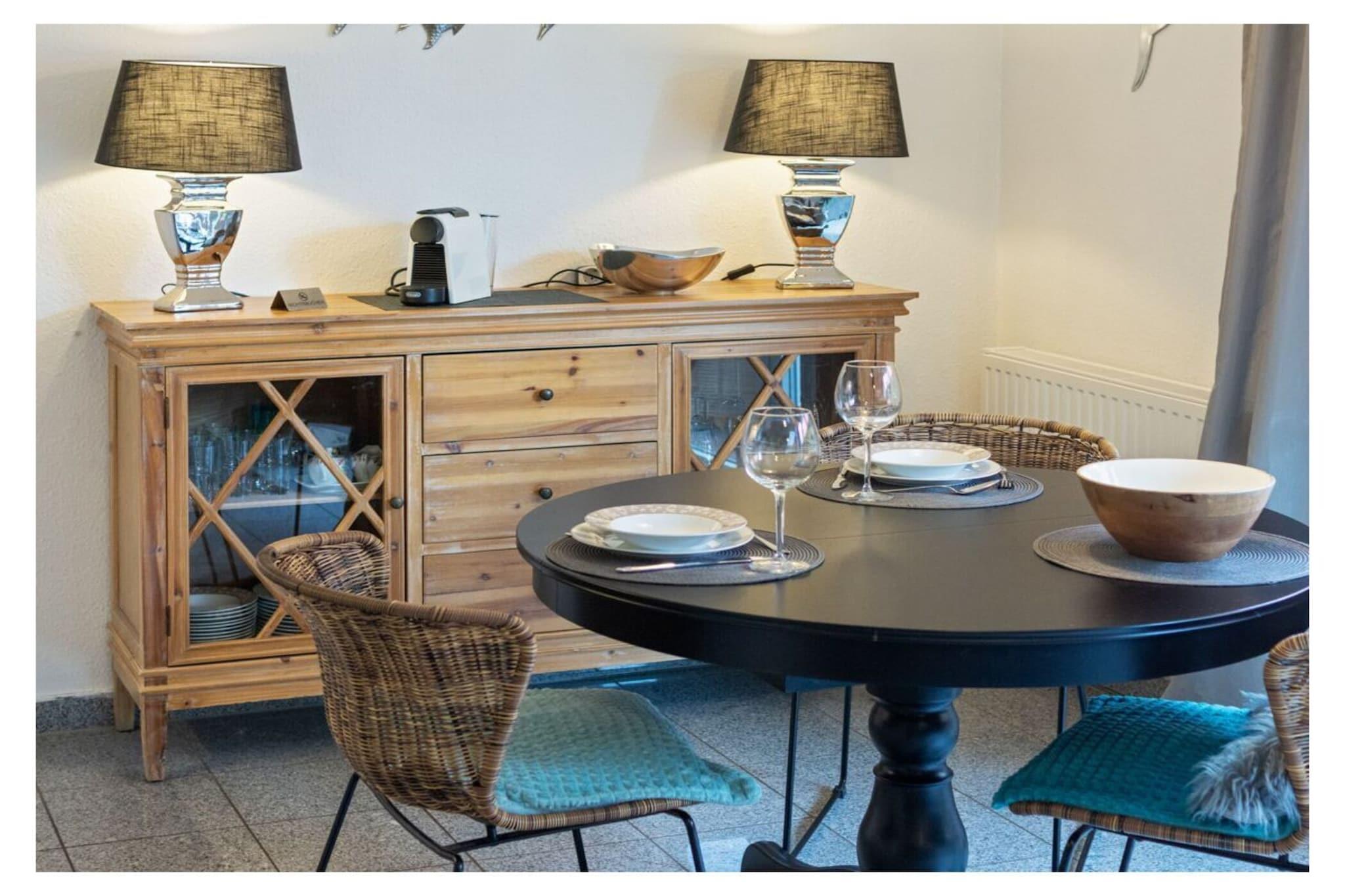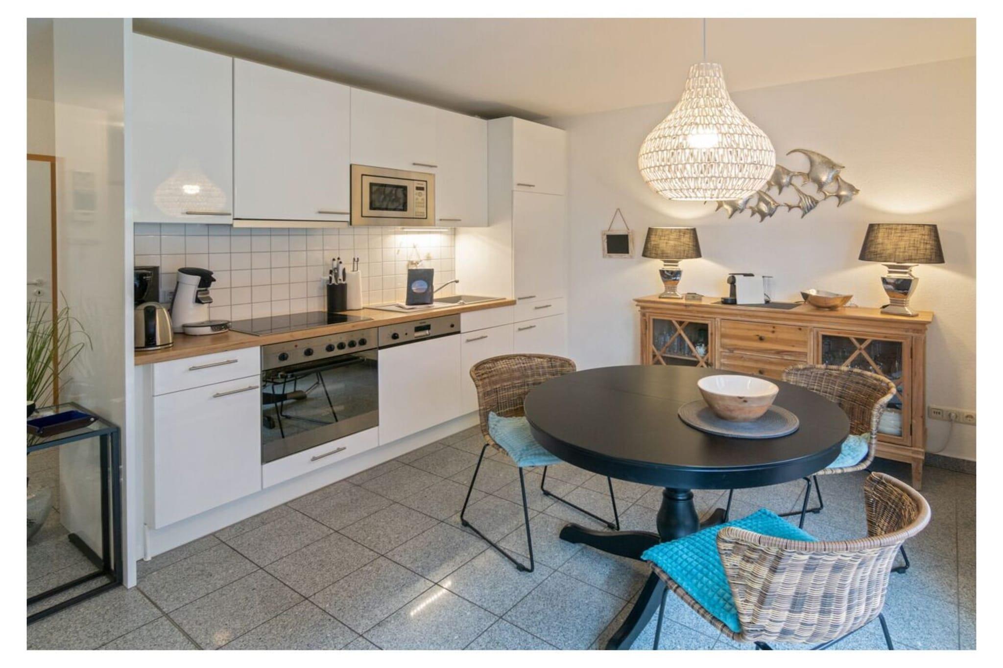 Gemütliche Ferienwohnung Dünenrose in Norddeich nahe Strand mit Terrasse und moderner Ausstattung.