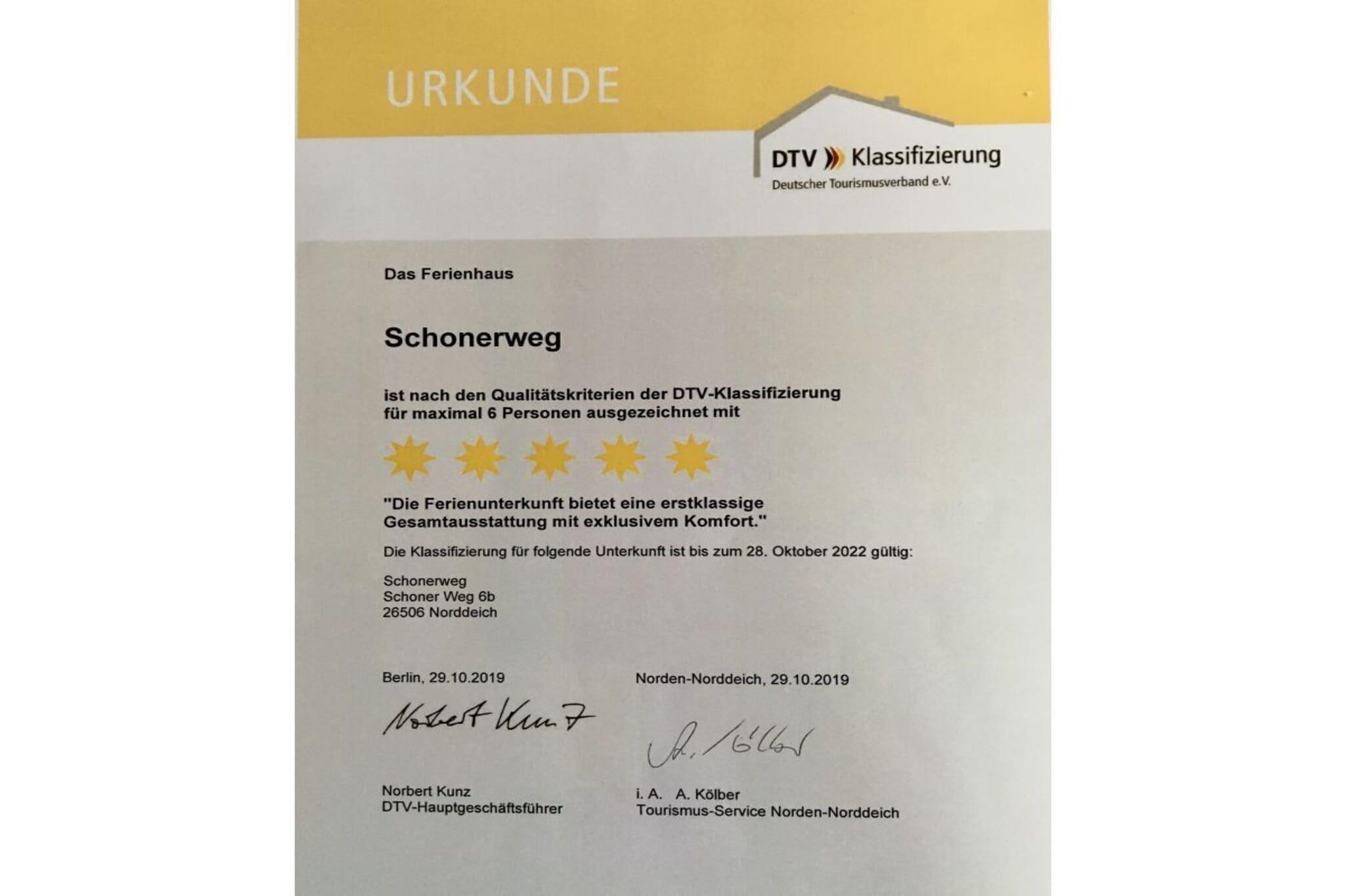Das Ferienhaus Schonerweg ist nach 5 Sterne Standard ausgestattet und eingerichtet. Es verfügt über 3 Schlafzimmer, 2 mit Doppelbetten, 1 mit Einzelbetten, alle mit Fernseher und DVD ausgestattet. 2 Bäder, eins mit Whirlpool und Dampfsauna, eins als Duschbad. Das großzügige helle Wohnzimmer mit Terrasse ist modern eingerichtet, die Fußbodenheizung und der Kamin sorgen hier für Wohlfühlwärme. Für die Unterhaltung sorgt ein 40" Curved LED Smart TV und eine moderne Musikanlage. Die Küche ist mit einer Einbauküche einer Sitzecke sowie einen Kaffeevollautomaten ausgestattet. Vollständiges Geschirr, Besteck und Küchenutensilien sind selbstverständlich vorhanden. Eine Gefriertruhe und Mikrowelle machen die Küche perfekt.