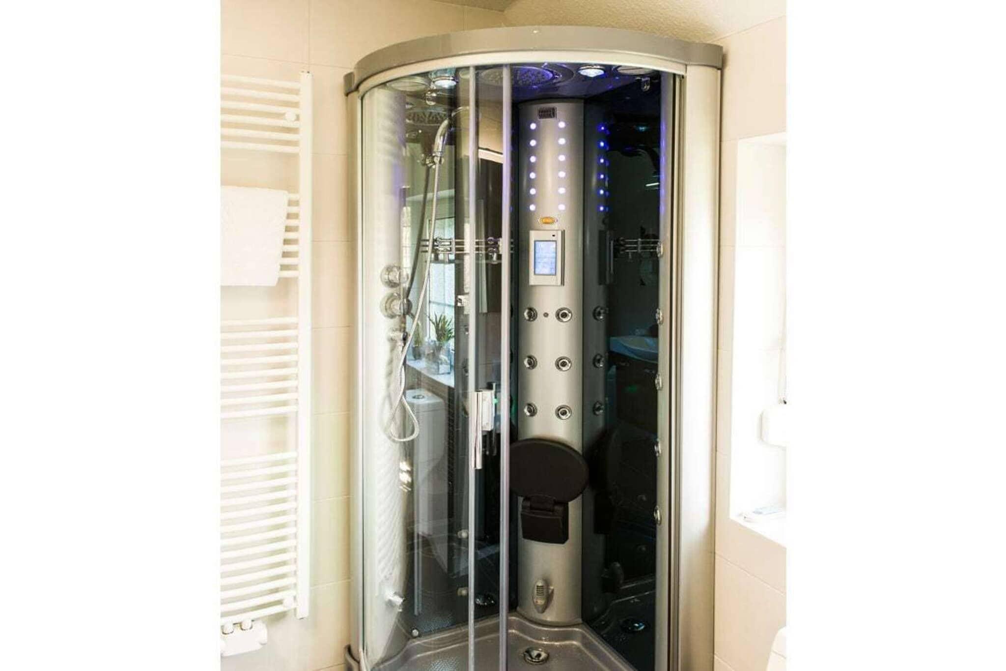 Parterre: (Wohnzimmer(, , TV, Kaminofen, DVD-Spieler, Stereoanlage, Heizung), Küche(, , , Kochnische, Esstisch, Herd, Kochplatte, Wasserkocher, Toaster, Kaffeemaschine, Backofen, Mikrowelle, Spülmaschine, Kühlschrank, Tiefkühlschrank, Heizung, Hochstuhl, ), Schlafzimmer(, , Doppelbett, TV, DVD-Spieler, Fliegenfenster)) In der 1. Etage: (Schlafzimmer(, , Doppelbett, TV, DVD-Spieler, Wickelauflage, Fliegenfenster), Schlafzimmer(, , Einzelbett, Einzelbett, TV, DVD-Spieler, Fliegenfenster), Badezimmer(, , Toilette, Dusche, Waschbecken, Heizung, Föhn)) , , , , , Badezimmer(Badewanne, Hottub, Dusche, Sauna, Waschbecken, Toilette, Föhn), Abstellraum(, Trockner, Waschmaschine, Bügelbrett, Bügeleisen, Trockenschrank), Internet, Internet, Erste-Hilfe-Station, Trockner, Waschmaschine, Heizung, Terrasse(, Liegewiese, Grill, Gartenmöbel, Liegen, Sandkasten, Markise, Gartenhaus), Garten(Liegewiese, Grill, Gartenmöbel, Liegen, Sandkasten), Parkplatz, Bügelbrett, Bügeleisen, Trockenschrank, Telefon
