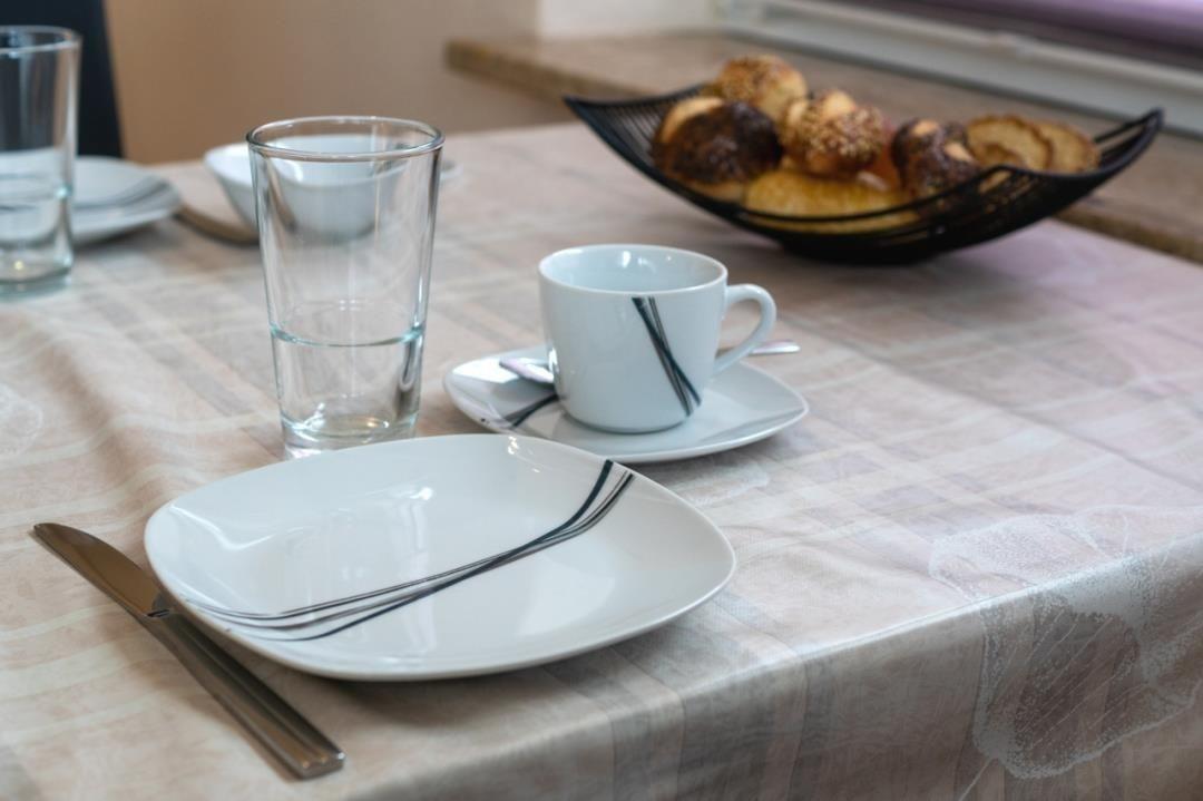 Die Küchenzeile wurde kompakt, aber doch sehr funktional gestaltet. Hier können Sie auch im Urlaub gut kochen. Zur Ausstattung gehört nicht nur ein Herd mit vier Platten, sondern auch ein Kühlschrank, eine Kaffeemaschine und weitere nützliche Kleingeräte wie ein Toaster oder ein Mixer. Geschirr, Gläser und Becher stehen ebenfalls in ausreichender Anzahl zur Verfügung.