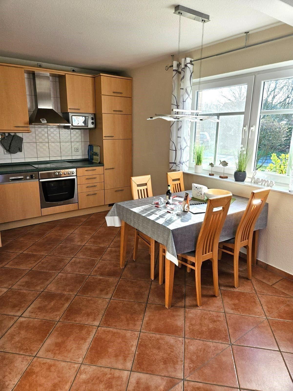 Die Ferienwohnung bietet eine großzügige und moderne Ausstattung, ideal für eine entspannte Auszeit. Mit drei Schlafzimmern ausgestattet, enthält sie zwei Doppelbetten sowie zwei Einzelbetten, die Platz für bis zu sechs Personen bieten. Die offene Küche verfügt über einen Geschirrspüler, einen Elektro-/Gasherd, eine Mikrowelle, einen Kühlschrank mit Gefriermöglichkeit, eine Kaffeemaschine und einen Toaster – alles, was für die Zubereitung von Mahlzeiten benötigt wird. Im gemütlichen Wohnbereich sorgt ein Sofa für Entspannung, während die HiFi-Anlage und der TV für Unterhaltung sorgen. Zwei Badezimmer, eines davon mit Fenster, bieten Komfort und Privatsphäre. Die Wohnung ist allergikergeeignet und verfügt über WLAN, einen Wäschetrockner, eine Waschmaschine, einen Esstisch, Stauraum und einen Parkplatz. Fliegengitter an den Fenstern garantieren zusätzlichen Komfort. Die ideale Umgebung für einen erholsamen Urlaub.