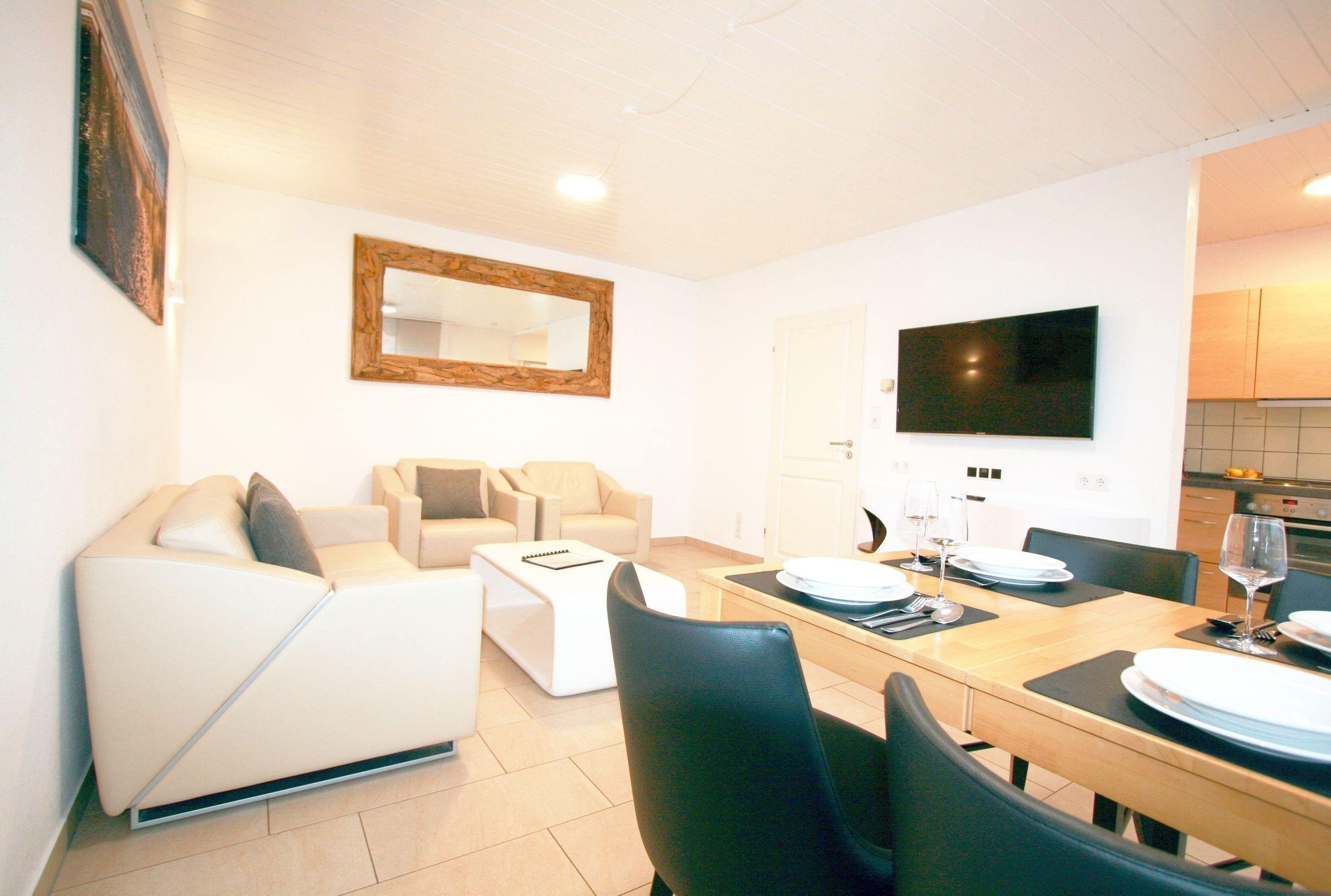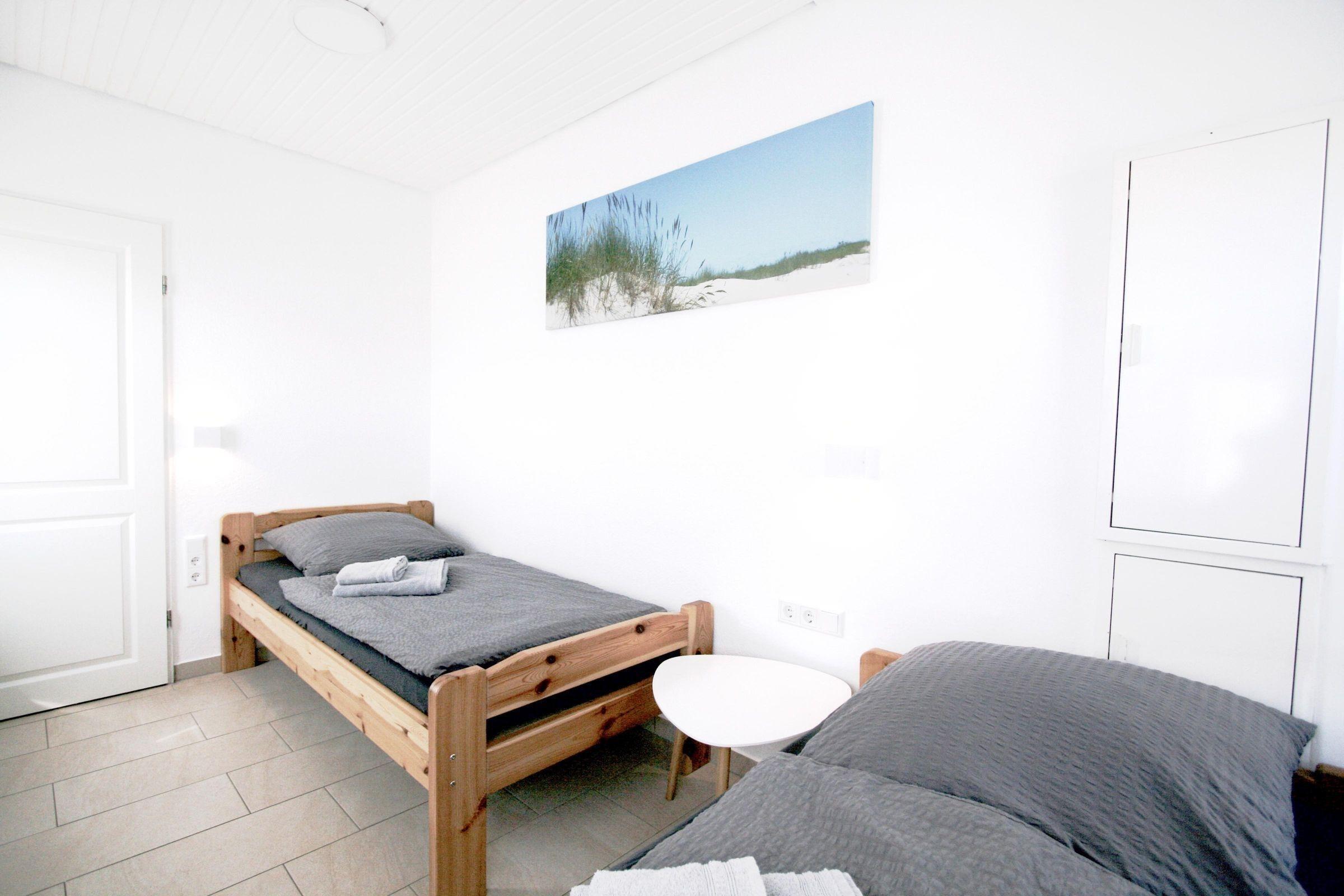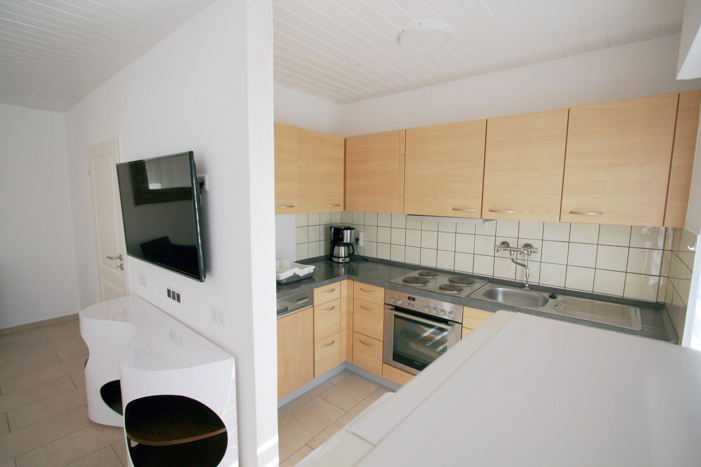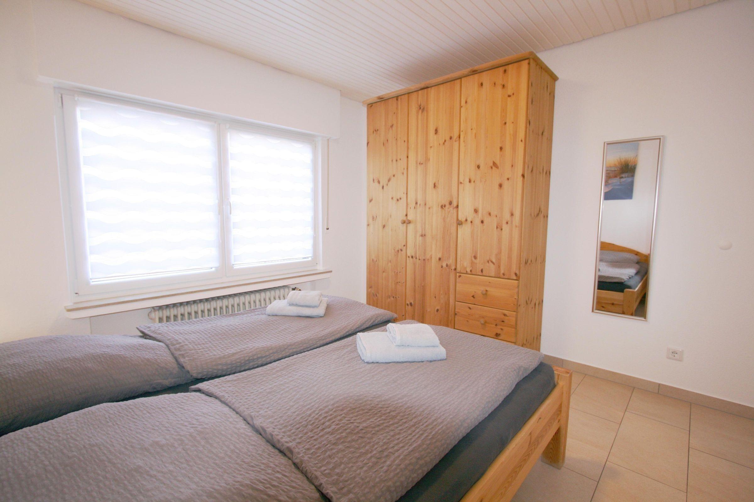 Die Ferienwohnung bietet eine ideale Unterkunft für Erholungssuchende und Familien. Mit zwei Schlafzimmern, einem Doppelbett und zwei Einzelbetten, findet jeder seinen Ruheplatz. Die offene Küche ist modern ausgestattet und verfügt über einen Geschirrspüler, Elektro- und Gasherd, Backofen, Mikrowelle, Kühlschrank, Gefriermöglichkeit sowie eine Kaffeemaschine und einen Eierkocher. Ein gemütlicher Esstisch lädt zu gemeinsamen Mahlzeiten ein. Das Allergiker geeignete Duschbad ist mit einer bodengleichen Dusche und einem Haartrockner ausgestattet und bietet zudem Tageslicht durch ein Fenster. Der Wohnbereich mit Sofa und Sessel sowie eine HiFi-Anlage und TV sorgen für entspannte Stunden. WLAN ist selbstverständlich verfügbar. Ein Wäschetrockner und eine Waschmaschine erleichtern den Aufenthalt, während Parkmöglichkeiten ebenfalls vorhanden sind. Diese Ferienwohnung ist somit ideal für einen komfortablen und unbeschwerten Aufenthalt.