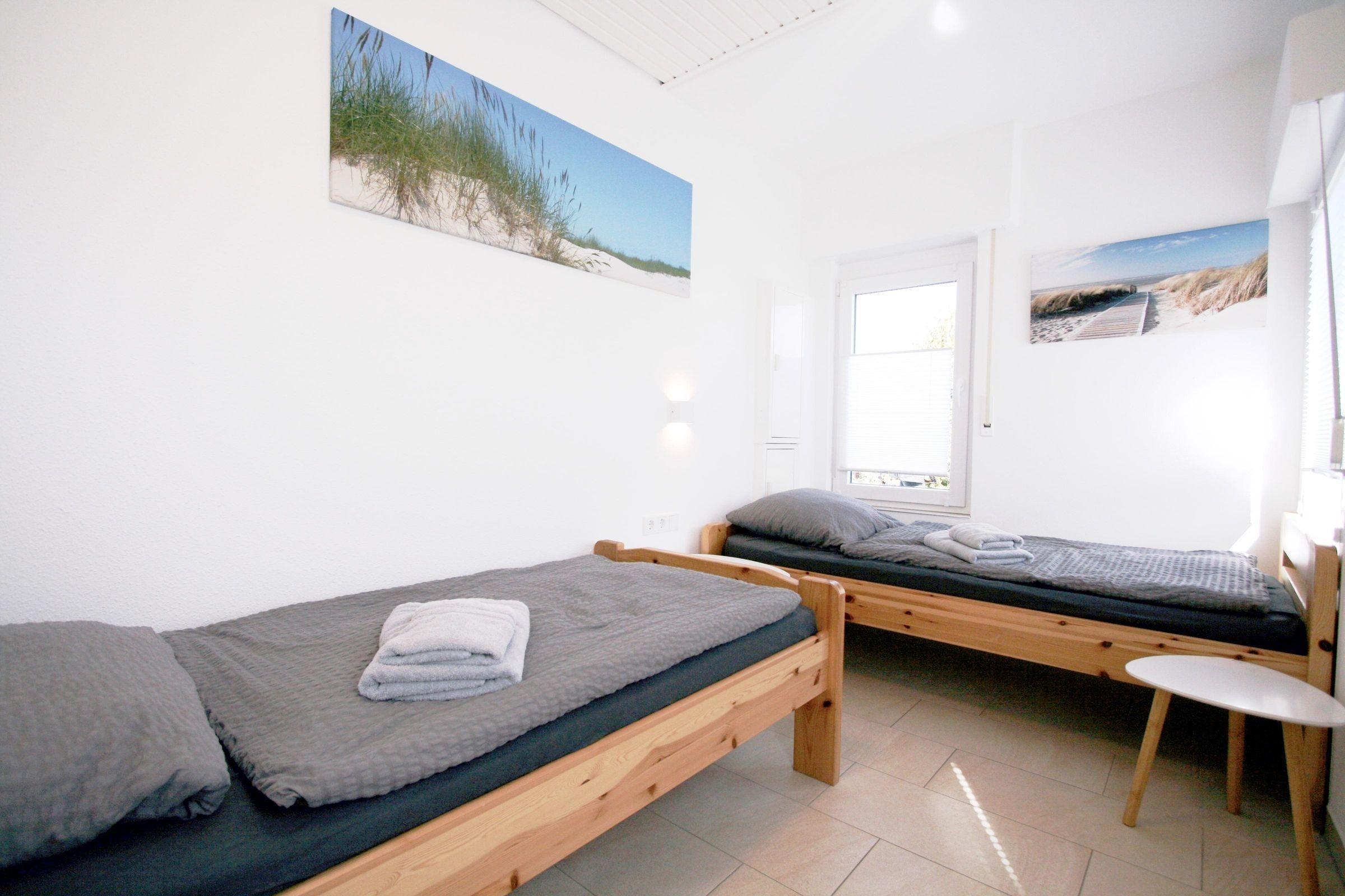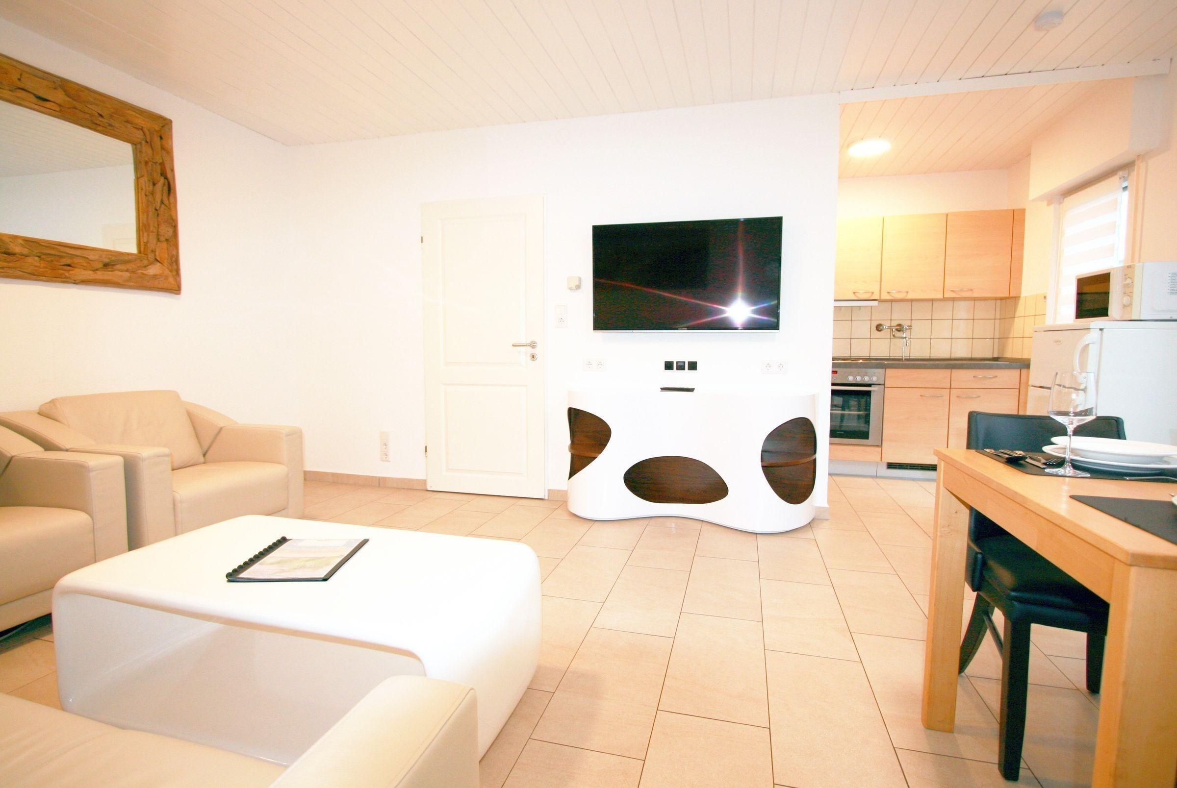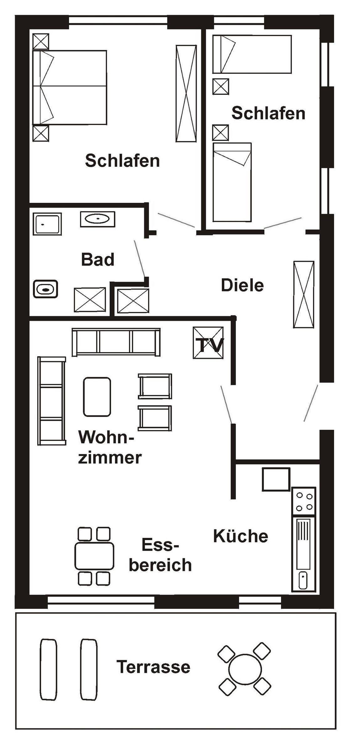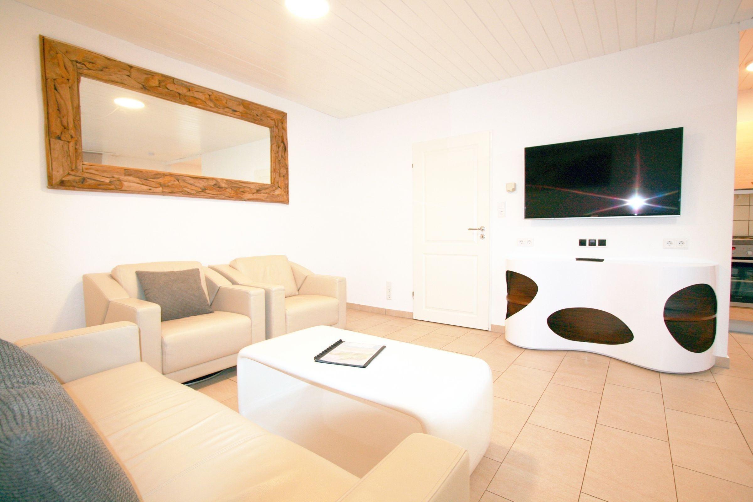 Die Ferienwohnung bietet eine ideale Unterkunft für Erholungssuchende und Familien. Mit zwei Schlafzimmern, einem Doppelbett und zwei Einzelbetten, findet jeder seinen Ruheplatz. Die offene Küche ist modern ausgestattet und verfügt über einen Geschirrspüler, Elektro- und Gasherd, Backofen, Mikrowelle, Kühlschrank, Gefriermöglichkeit sowie eine Kaffeemaschine und einen Eierkocher. Ein gemütlicher Esstisch lädt zu gemeinsamen Mahlzeiten ein. Das Allergiker geeignete Duschbad ist mit einer bodengleichen Dusche und einem Haartrockner ausgestattet und bietet zudem Tageslicht durch ein Fenster. Der Wohnbereich mit Sofa und Sessel sowie eine HiFi-Anlage und TV sorgen für entspannte Stunden. WLAN ist selbstverständlich verfügbar. Ein Wäschetrockner und eine Waschmaschine erleichtern den Aufenthalt, während Parkmöglichkeiten ebenfalls vorhanden sind. Diese Ferienwohnung ist somit ideal für einen komfortablen und unbeschwerten Aufenthalt.
