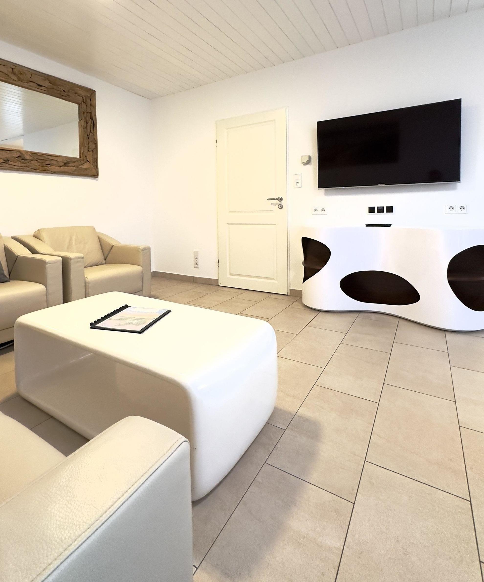 Die Ferienwohnung bietet einen einladenden Außenbereich mit einer großzügigen Terrasse und einem privaten Garten. Ausgestattet mit bequemen Gartenliegen und Liegestühlen, lädt dieser Raum zum Entspannen und Genießen der Natur ein. Hier kann man die ruhige Atmosphäre in vollen Zügen erleben und unvergessliche Momente im Freien verbringen.