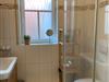 Das Bad bietet eine Dusche, ein WC und ein Waschbecken.