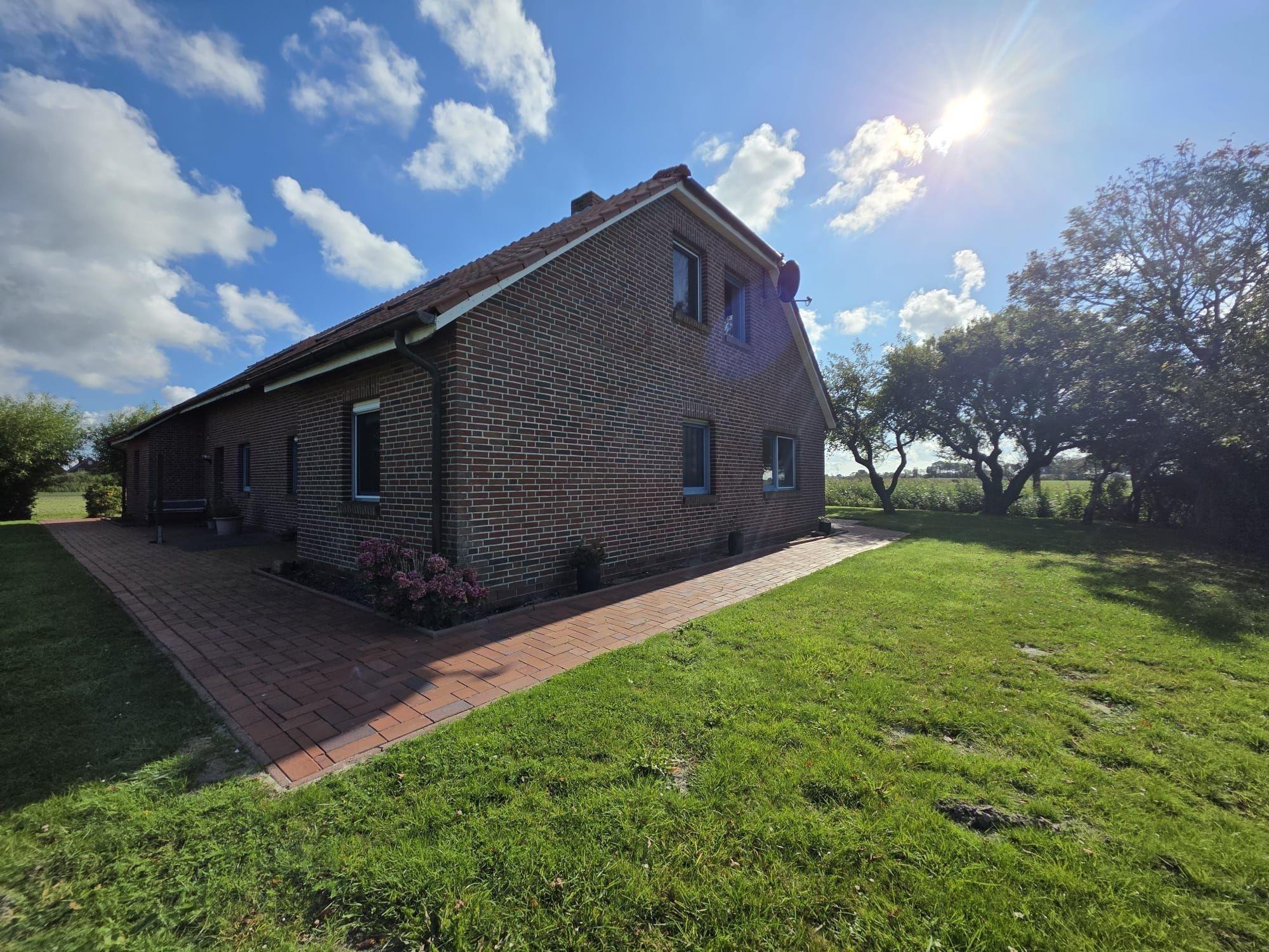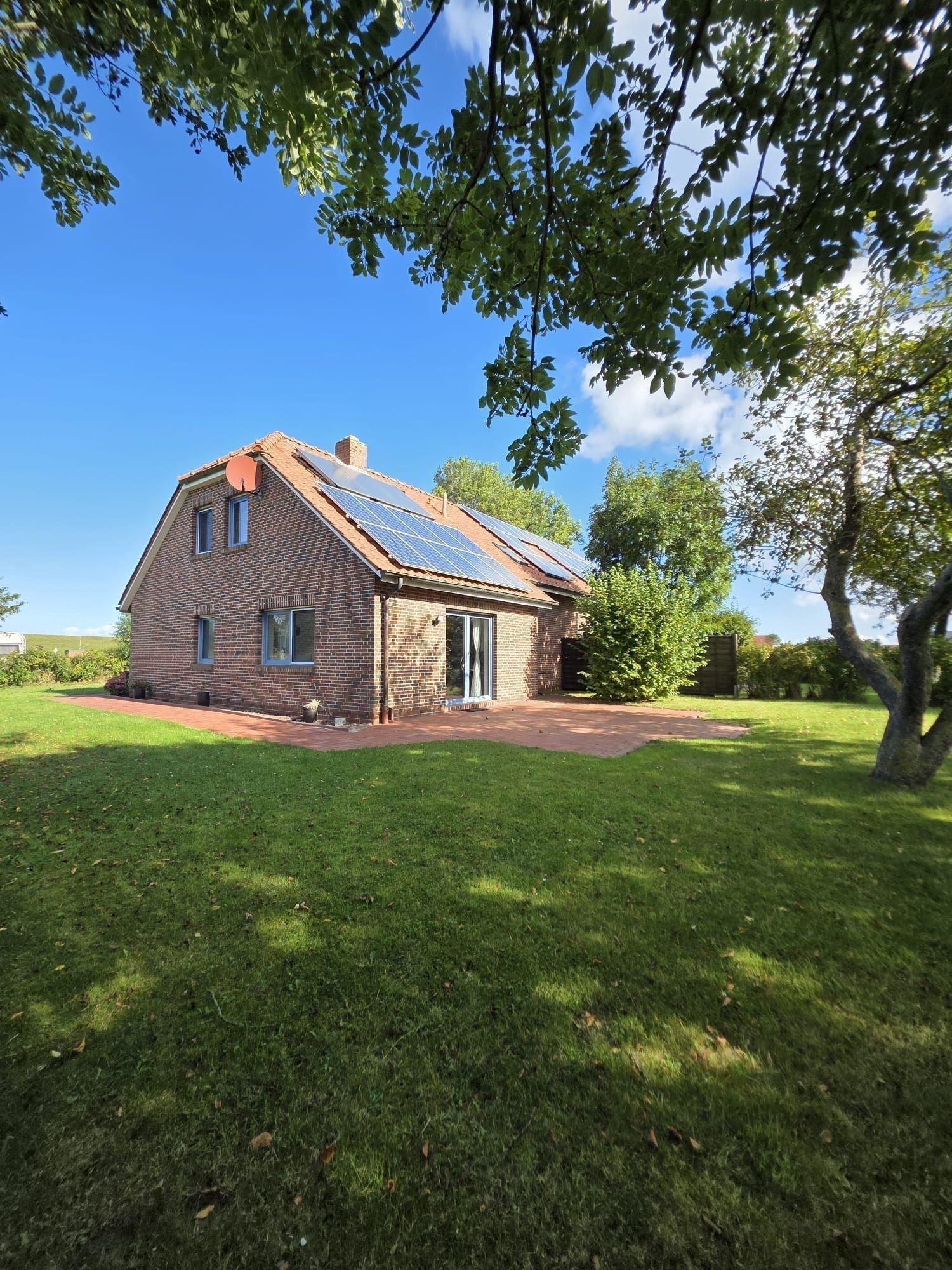 Modernes Ferienhaus in Norddeich mit großem Garten, Deichblick und Kamin für entspannte Tage an der Nordsee.