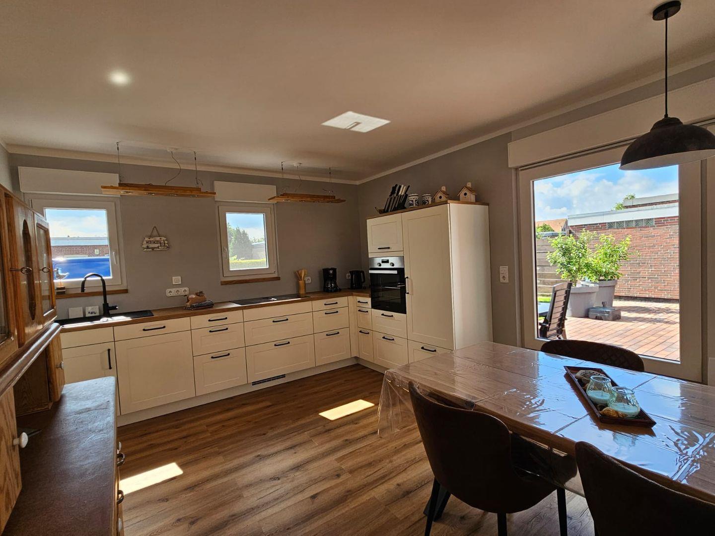 Freuen Sie sich auf einen großen, geräumigen und hellen Ferienbungalow mit Küchenzeile offen zum Wohnzimmer, Badezimmer, 2 Schlafzimmern.