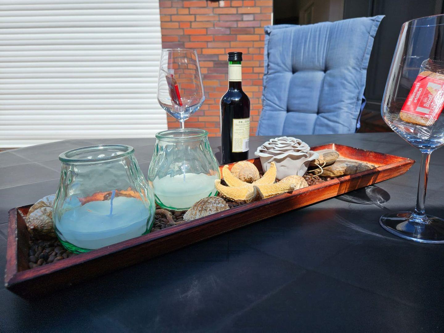 Bei sonnigem Wetter steht im Gartenbereich am Haus einem gemütlichen Abend in Ihrem Urlaub nichts mehr im Weg. Die Terrasse verfügt über Gartenmöbel und Sonnenschutz.