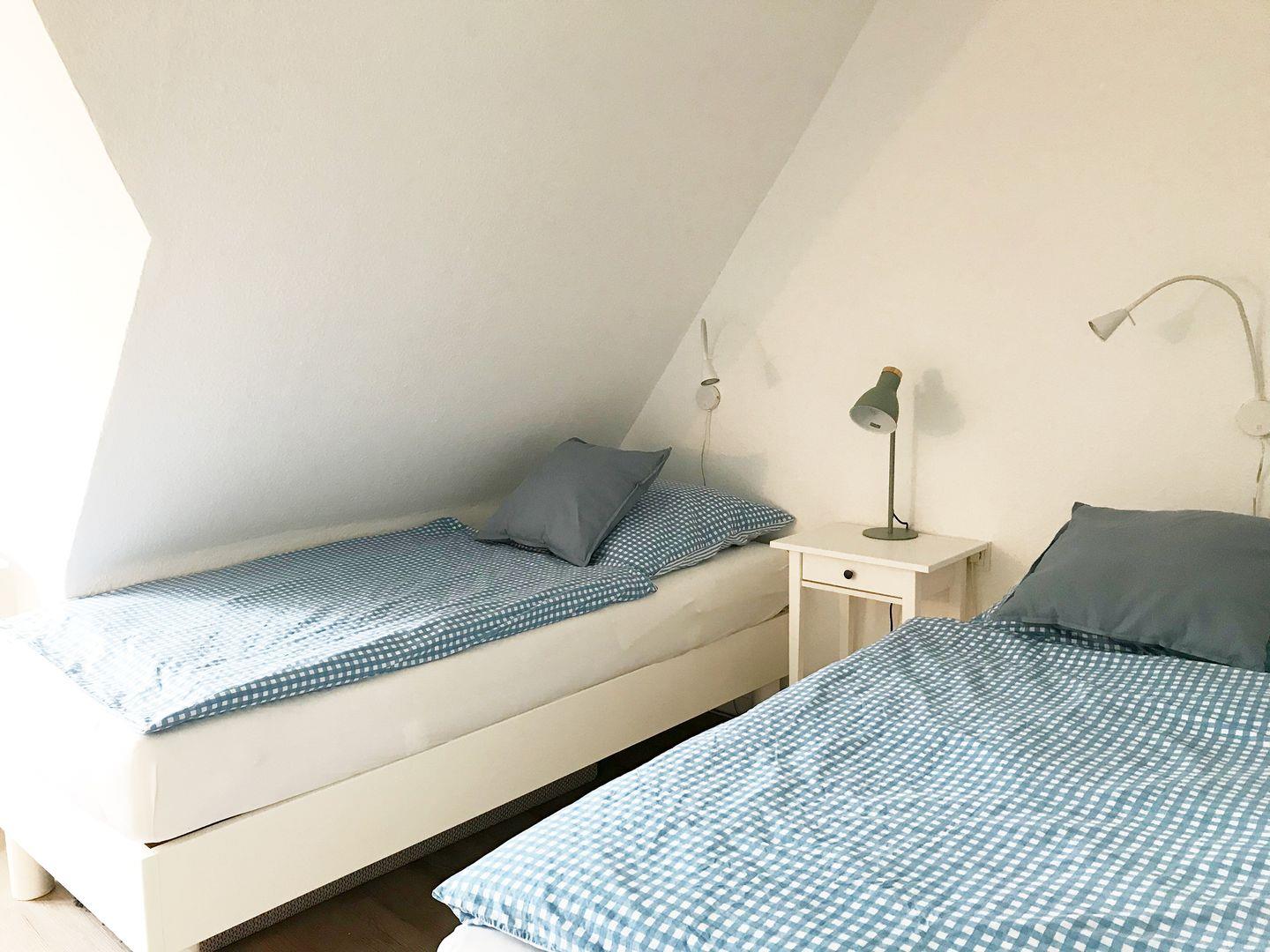 Die Ferienwohnung verfügt über 1 Wohnraum mit WLAN und Sat-TV und offener Küche, 3 Schlafzimmer, 1 Badezimmer mit Dusche und 1 separates WC; Gemeinschaftsgarten mit Gartenmöbeln und Strandkorb (April bis Oktober).