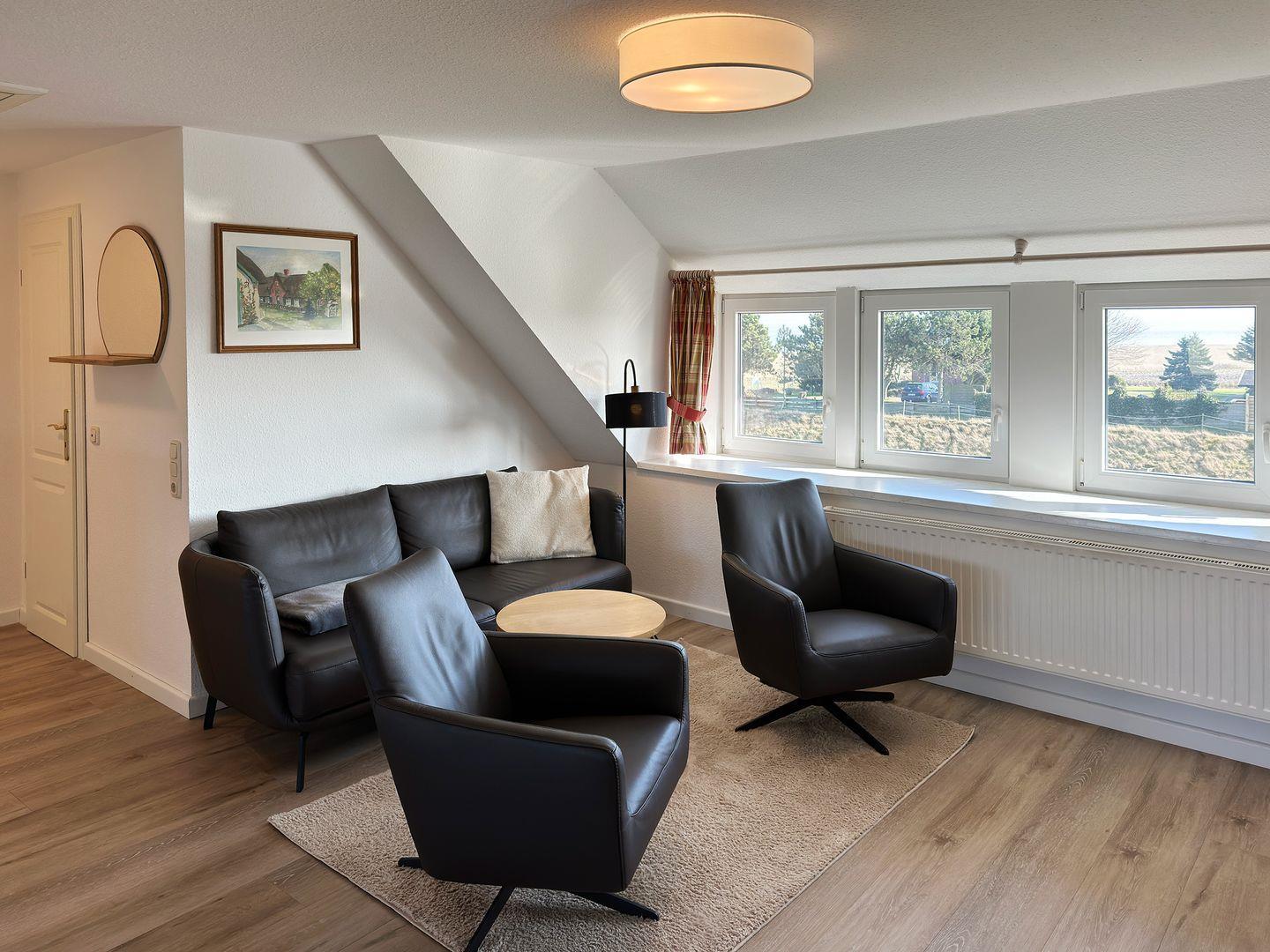 Die Ferienwohnung Bräätlun 3 in Norddorf auf Amrum bietet komfortable 3 Zimmer und einen Strandkorb im Garten.