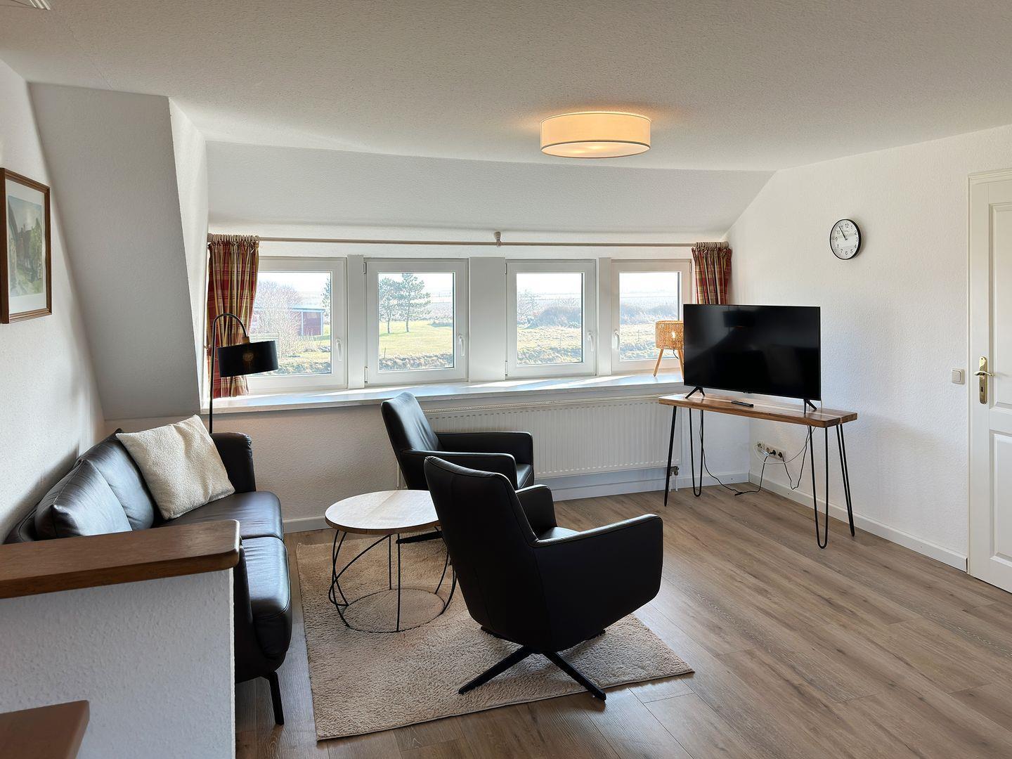 Die Wohnung verfügt über 1 Wohnraum mit Sat-TV, 1 Küche, 2 Schlafzimmer, 1 Badezimmer mit Dusche und WC, 1 Strandkorb im Garten (April bis Oktober). Auf dem Grundstück befindet sich ein Wäscheplatz. Bei Bedarf können Sie die Waschmaschine und den Trockner im Madelwai 7, Haus Strunluuper, nutzen.