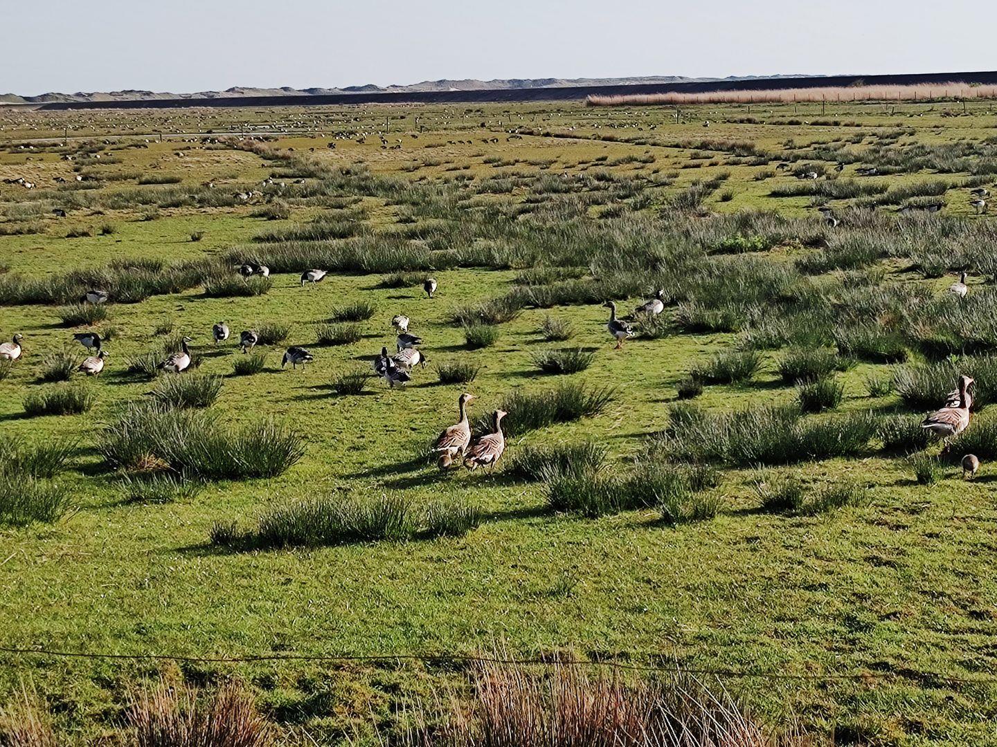 Ankommen, auspacken und Ausblick genießen: Der einmalige Blick über die Norddorfer Marsch bis hin zur Amrumer Nordspitze, der Odde, bietet immer neue Eindrücke. Insbesondere Tierfreunde und Ornithologen kommen auf ihre Kosten: Ob Gänse und ihre Jungtiere im Frühjahr, Möwen, Kiebitze oder Pferde in den Sommermonaten - es gibt immer etwas zu sehen. Im Abendlicht, mit einem Glas Wein in der Hand, ist dann die Entspannung perfekt.