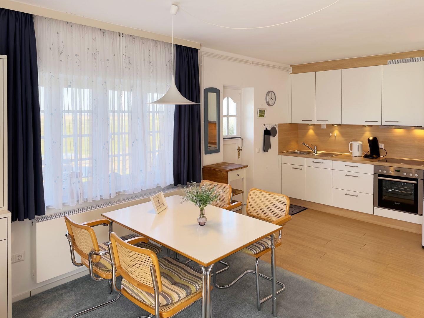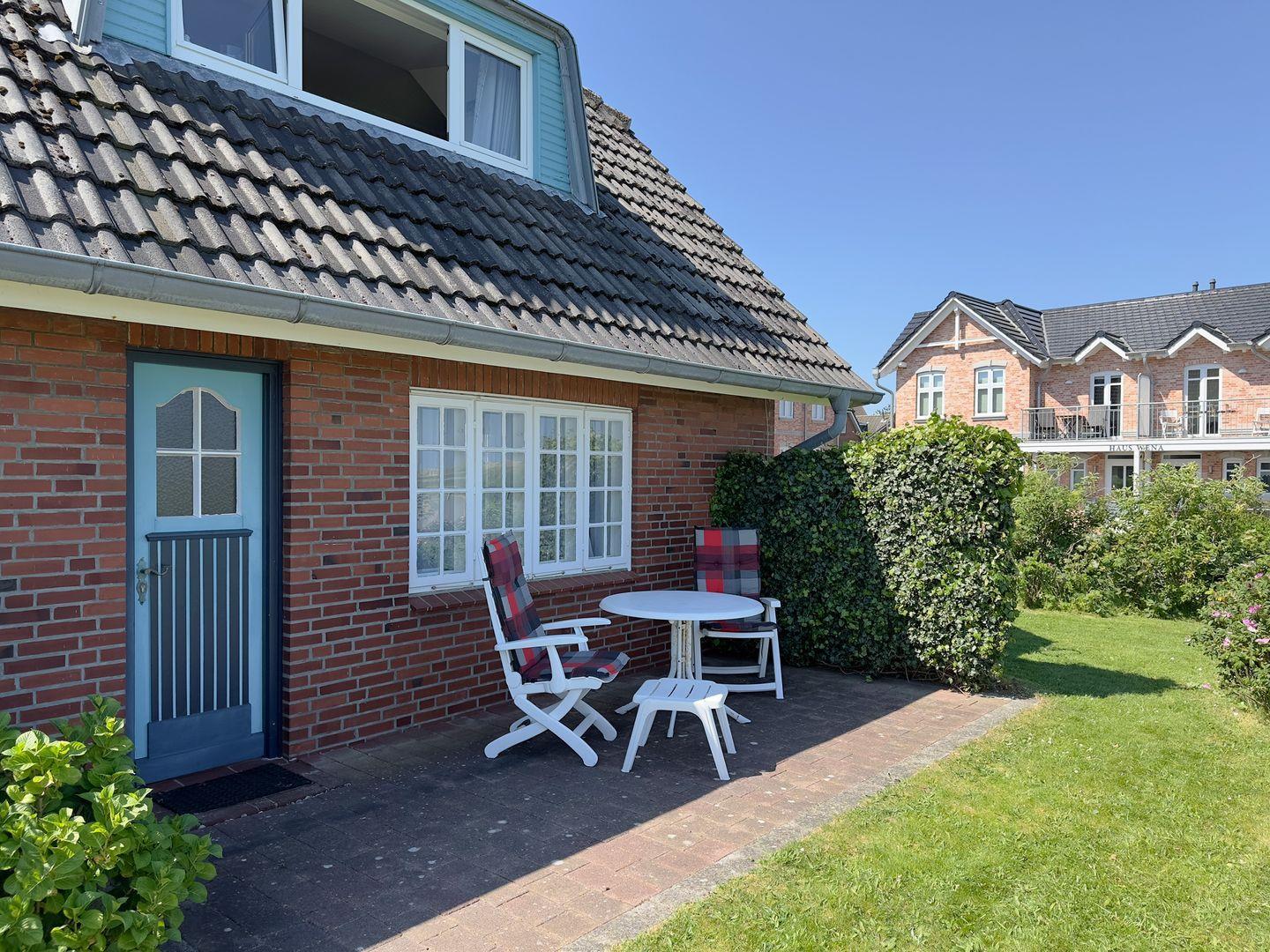 Die Ferienwohnung Letj Gus im Haus Störtebeker ist der ideale Ausgangspunkt, um auf der großzügigen Terrasse zu entspannen, in wenigen Minuten zum Strand zu gehen, einen Deichspaziergang im Abendlicht zu genießen und auch um die restliche Insel zu Fuß oder per Fahrrad zu erkunden. Der Norddorfer Ortskern mit Bäcker, Kino, Supermarkt, Eisdiele & Co. ist in zwei Minuten zu Fuß erreicht.