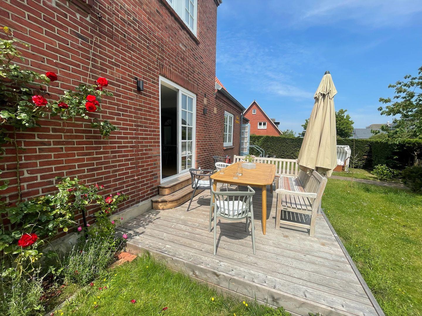 Ferienhaus Gerdina in Norddorf auf Amrum bietet moderne en-suite Zimmer, zwei Terrassen und Strandnähe für bis zu zehn Personen.