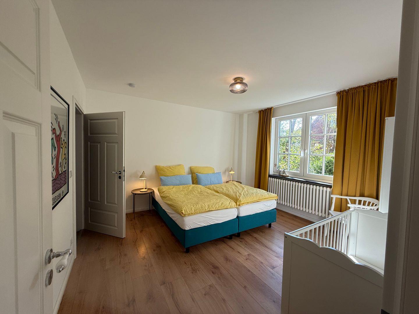 Hell, geräumig, mittendrin in Norddorf: Gerdina bietet ca. 240 m² Wohnfläche, 5 Schlafzimmer mit Hotel-Doppelbetten – jedes mit eigenem Bad – plus ein weiteres Bad neben der Küche. Draußen: zwei Terrassen, umzäunter Garten und eigene Strandkörbe. Dazu WLAN, Smart-TV/DVD, Waschmaschine & Trockner, 1 Parkplatz – alles fußläufig zu Bäcker & Supermarkt. Für bis zu 10 Personen.