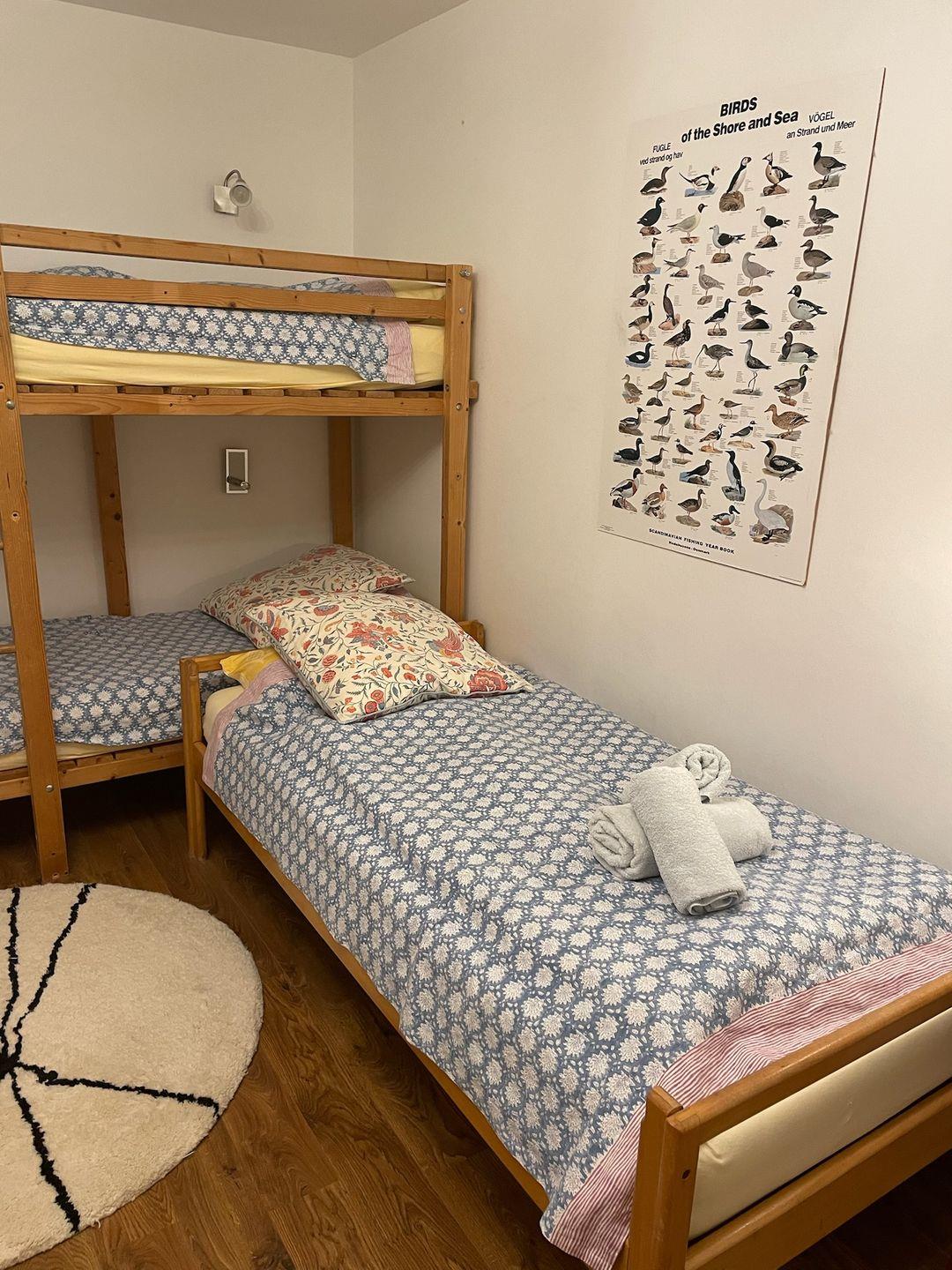 Nordisch gemütlich, smart aufgeteilt: In Maramilton wohnen Familien auf ca. 70 m² so, wie Urlaub sein soll – unkompliziert und gut ausgestattet. Das Wohnzimmer mit Essbereich geht in eine hochwertige Einbauküche über; gemeinsam Kochen und Planen der Inseltage fällt hier leicht. Schlafen wie zuhause: ein Elternschlafzimmer und ein Kinderzimmer mit zwei Stockbetten (insgesamt 4 Kinderbetten) machen das Zubettgehen stressfrei. Dazu gibt es ein großes Bad mit Dusche & WC sowie ein separates WC – praktisch, wenn morgens alle gleichzeitig los wollen. Draußen warten Garten & Terrasse mit Strandkorb und Sandkasten; nach Strand, Watt und Dünen wärmt die Sauna – und Waschmaschine & Trockner halten das Gepäck überschaubar. Platz bietet die Wohnung für bis zu 6 Personen (max. 4 Erwachsene). Hunde sind ebenso willkommen. Das Haus ist Rauchfrei.
