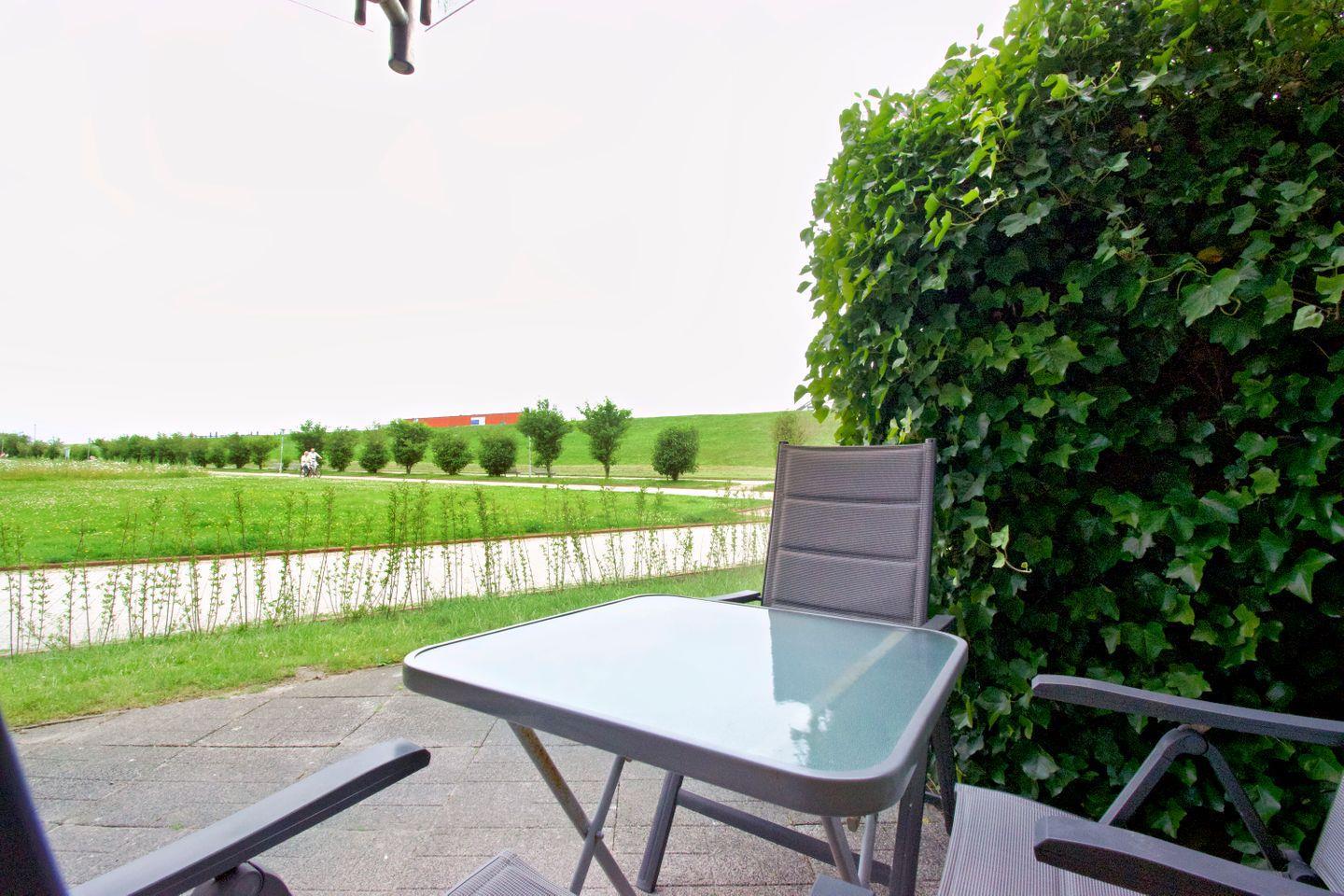 Möblierte Terrasse mit Deichblick
