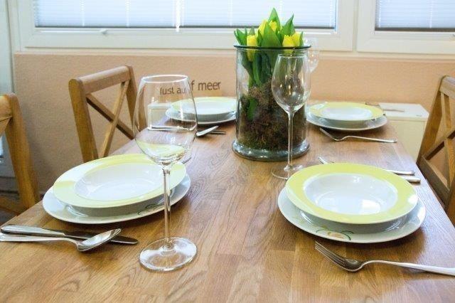 Alle wünschenswerten Elektrogeräte sind hier vorhanden. Sogar eine Geschirrspülmaschine wurde integriert und nimmt Ihnen auch im Urlaub den lästigen Abwasch ab. Selbstverständlich stehen Ihnen auch alle nötigen Küchenutensilien zur Verfügung.