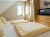 Ebenso wie der gesamte Wohnbereich befindet sich auch der erste Schlafraum im Obergeschoss. Der Raum wurde mit einem schönen Doppelbett (180x200cm) ausgestattet. Damit Sie hier ungestört nächtigen können, lässt sich das Schlafzimmer - ebenso wie die gesamte Wohnung - über elektrische Jalousien verdunkeln.